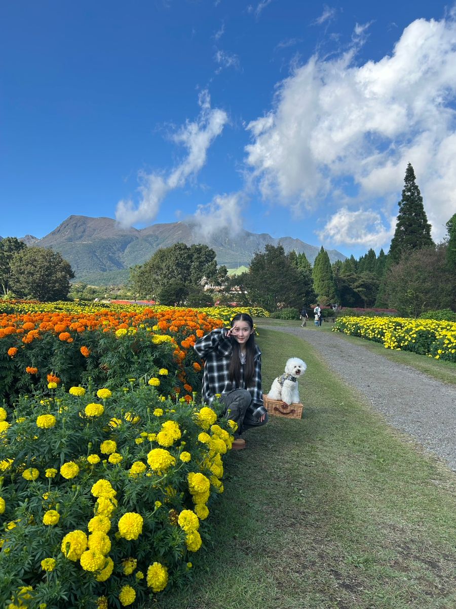 マリーゴールド✿と、ワンちゃん🐶と、くじゅう連山⛰️