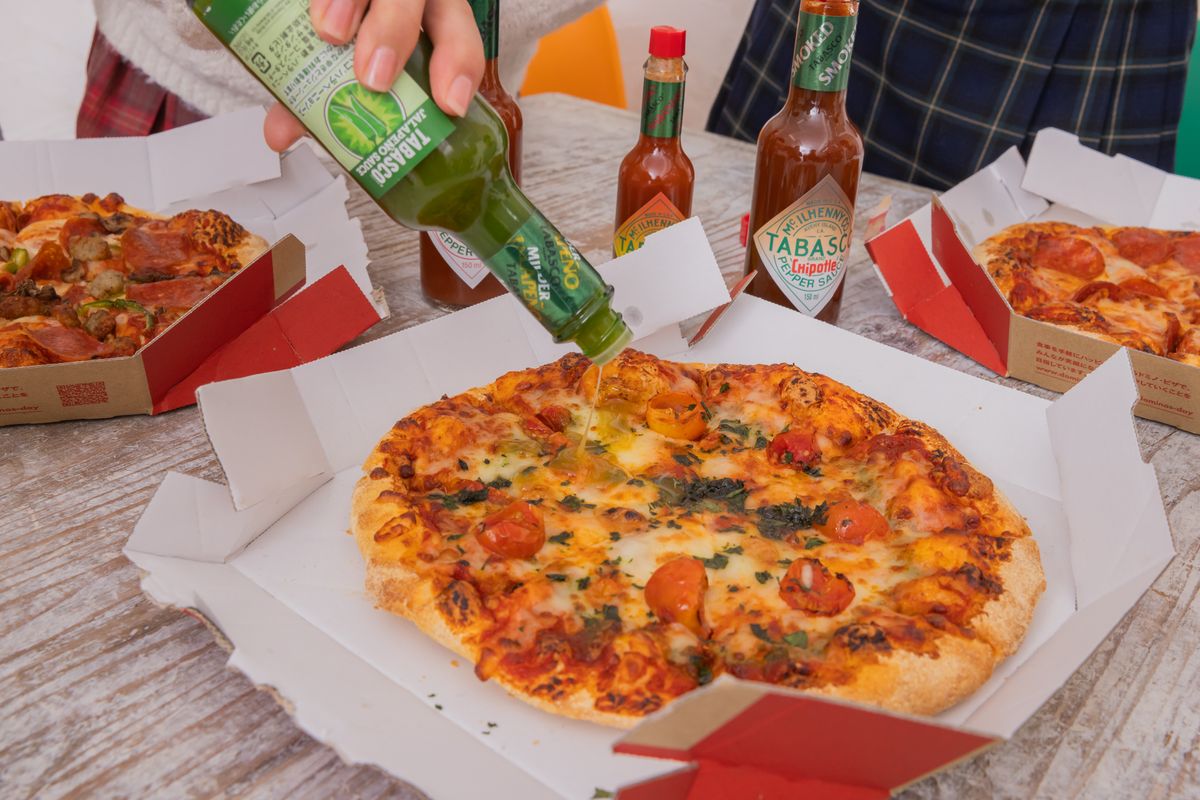 11月11日〜30日(日)までの期間限定! 「ピザに、タバスコ®」キャンペーンを開催中☆ ドミノ・ピザとのコラボレーション「ドミノに、タバスコ®キャンペーン」では、対象のピザを買うとTABASCO®ミニボトル3種セットがもらえるよ。くわしくはココからチェック!