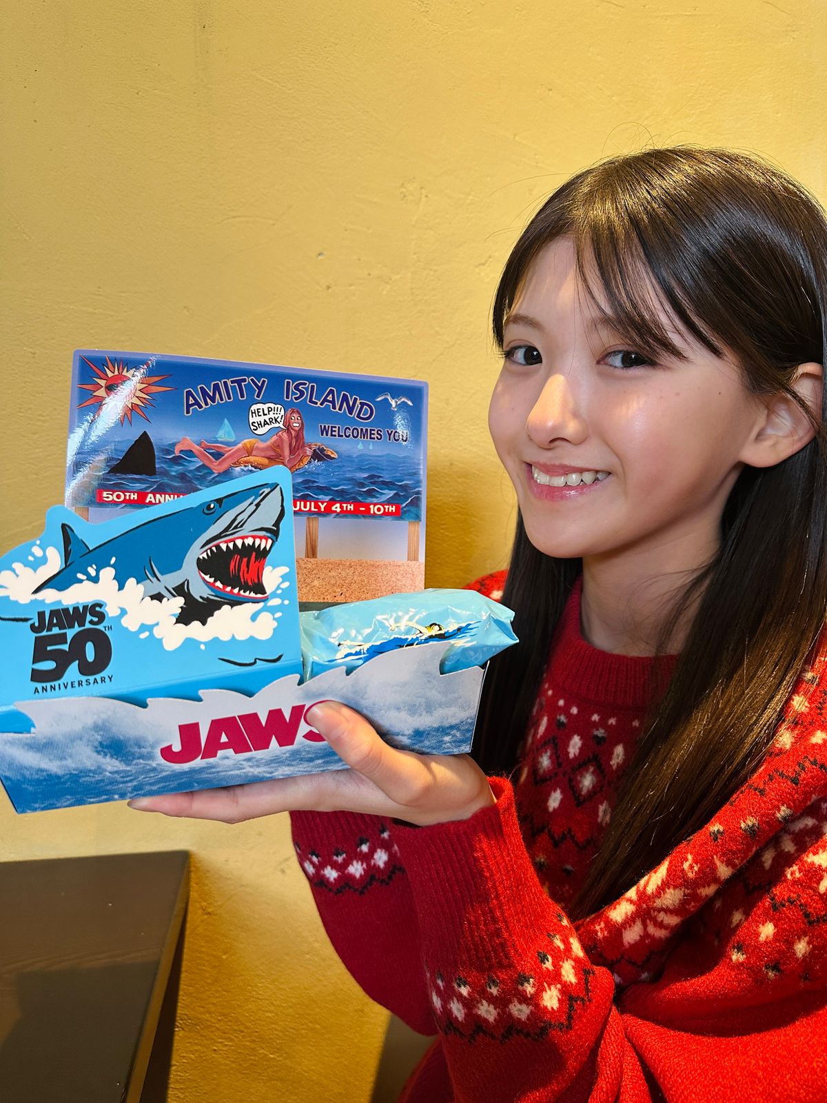 50周年限定ロゴ入りの、写真も購入☆ 大迫力のサメといっしょに写真撮ってみてね。『アミティ・ランディング・レストラン』のメニューがリニューアル
