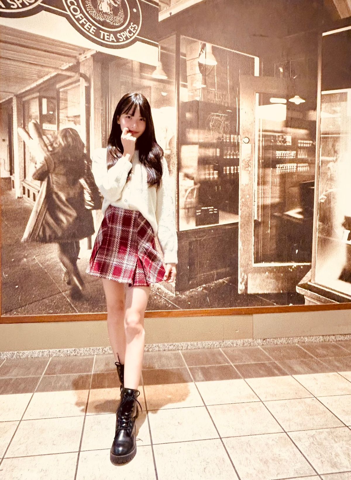 一つ目は、赤x白のお出かけコーデです💕白のふわふわのカーディガンと赤と白のツイード素材のスカートがクリスマスっぽくてお気に入りです🤍❤️🤍