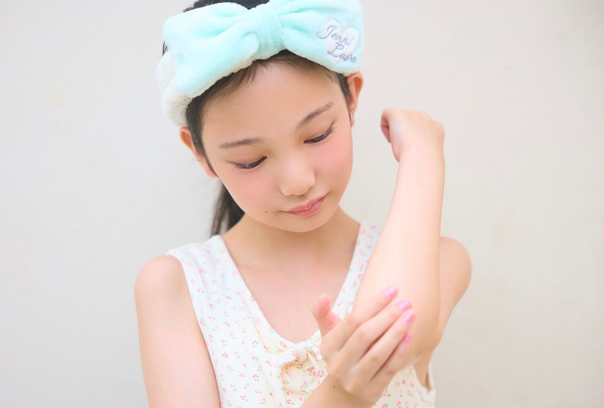 500円玉くらいの量を、手のひらでやさしく押しこむようにつけてね。たたいたりこすったりするのはNG!