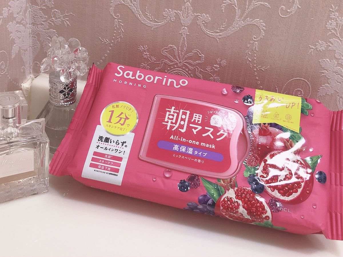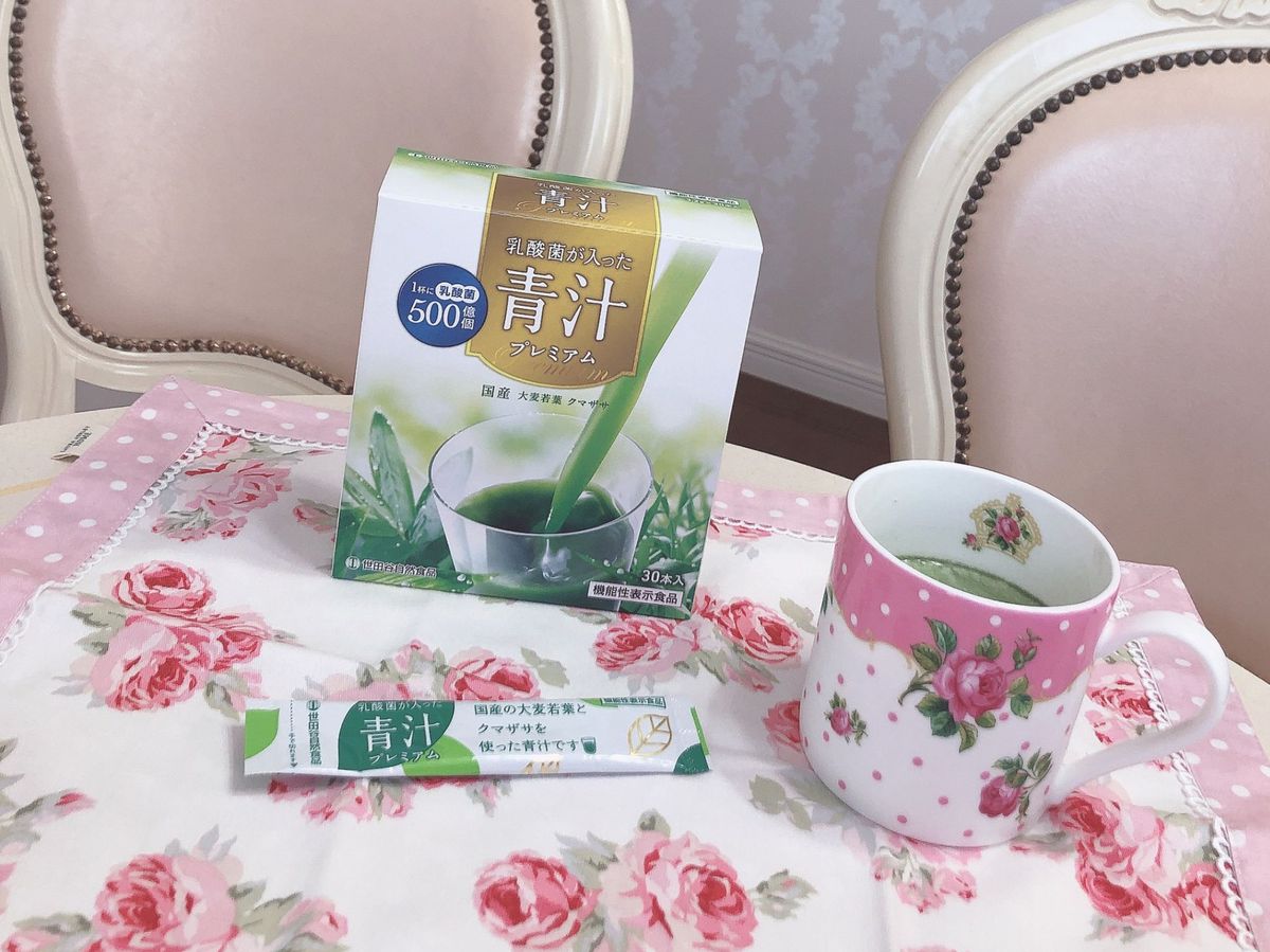 青汁&朝パックは朝のルーティン。花柄のかわいいコップを使えば美容モチベも上がる! サボリーノのパックは時間のない朝にぴったりだよ♡