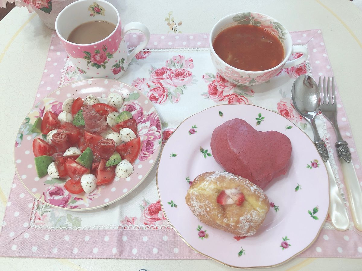 この日はドーナツと生ハムとアボカドのサラダ。アボカドは美容にもよくて大好物だよ♪ 見た目のかわいいものを食べると朝からテンションアップ♡