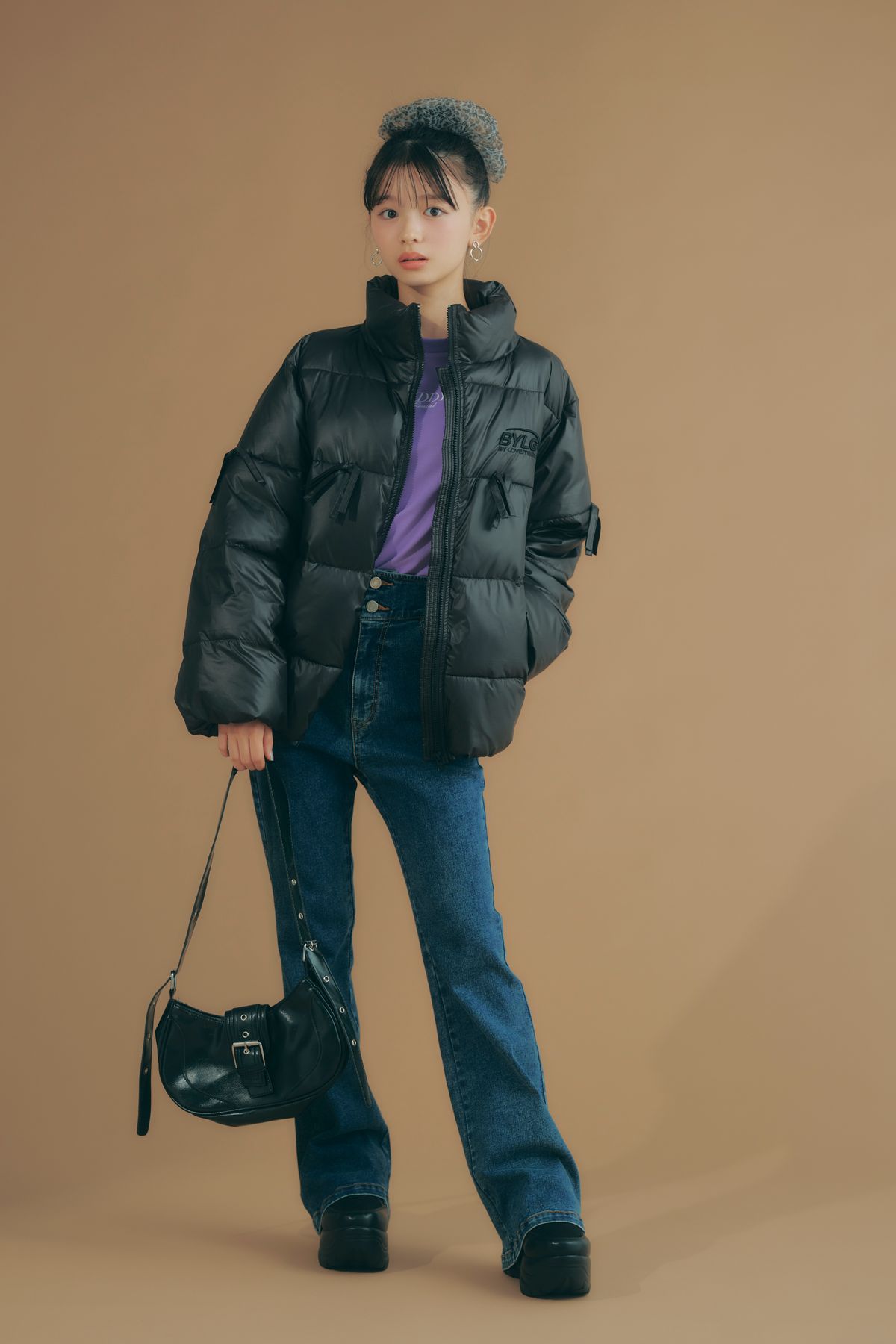 ダウンジャケット¥8690/バイ ラビット ロンT¥3960/ジディー パンツ¥16390/メゾ ピアノ ジュニア シュシュ¥330/ラティス イヤリング¥550/ルナアース バッグ¥1980/URBAN CHERRY スニーカー¥5990/ピンク ラテ