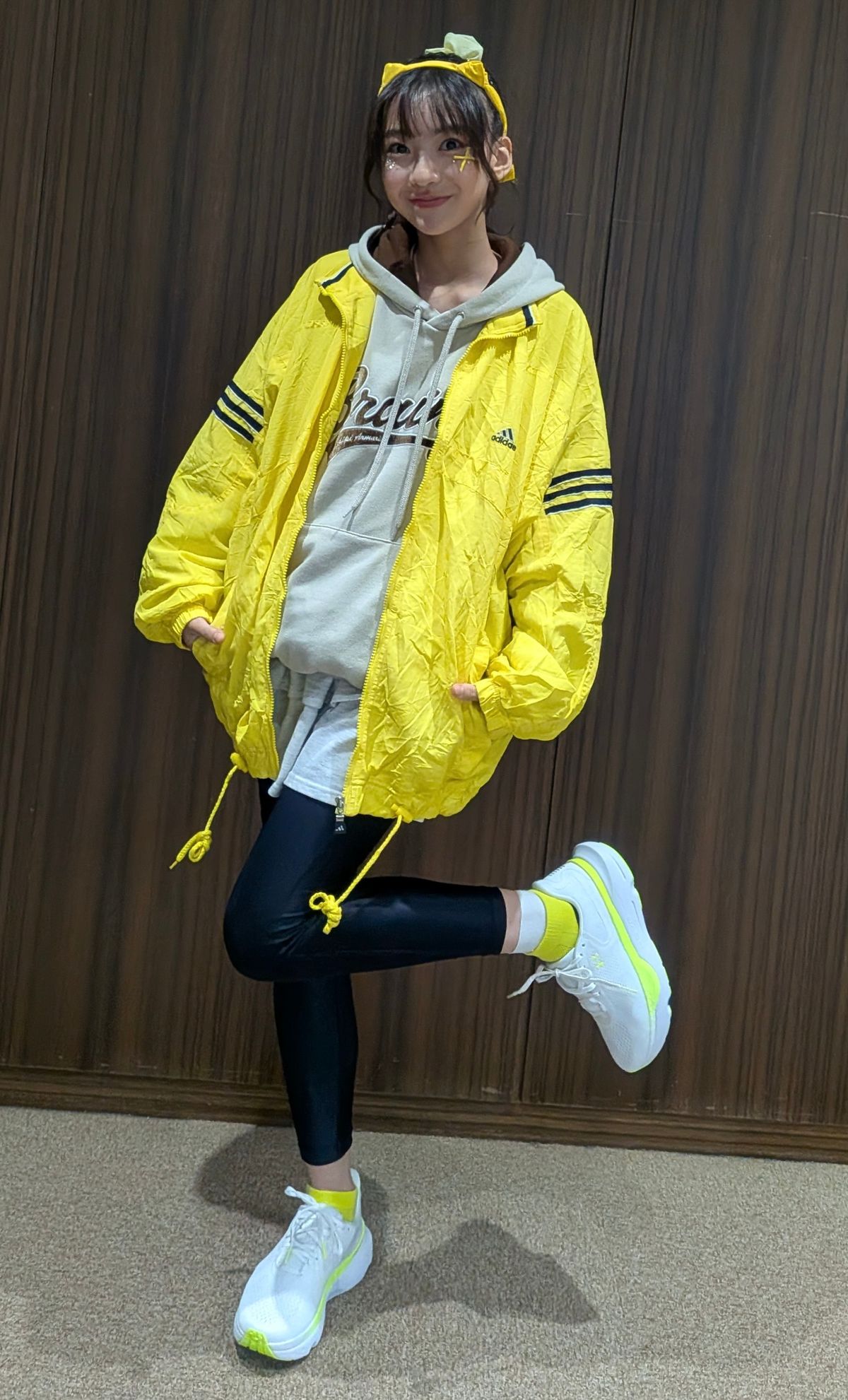 ニコ☆プチモデルの私服連載「プチ㋲私服スナップ/メン㋲私服スナップ」。ニコ☆プチ冬号『ニコ☆プチ大運動会2025』でプチ㋲が着ていた私服を、毎日順番に紹介していくよ! 今回の運動会コーデのテーマは“チームカラーを取り入れた、動きやすくておしゃれなスポコーデ”☆ スポブランドとファッションブランドをセンスよくミックスした、ミレイのイエローコーデに注目☆