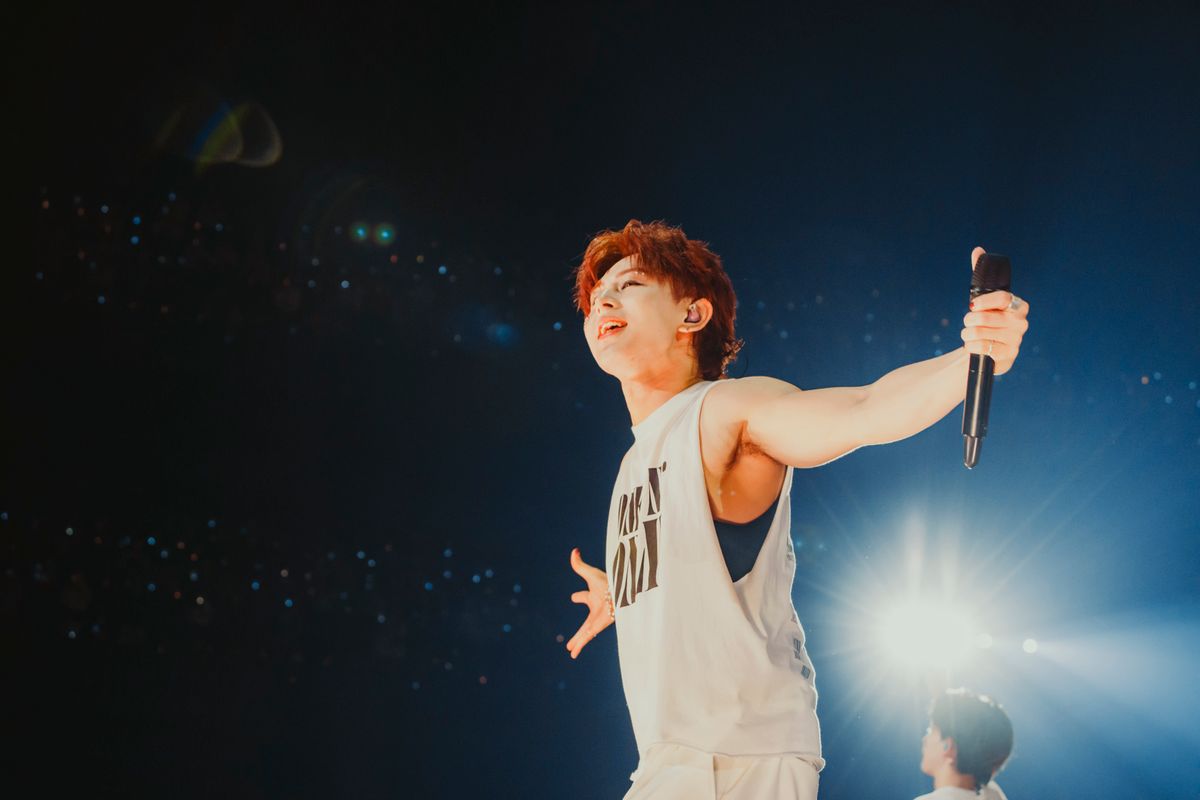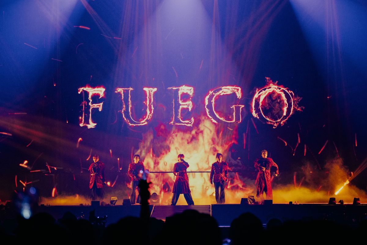 また、トロピカルムードいっぱいの「RIDE」も『AMAZONIA』収録の新曲。レゲトンのリズムに合わせ、互いの肩に手を置いて一列になったりと、朗らかなサマーチューンを遊び心のある振り付けで届けていく。太陽のまぶしい光の次は、夏の夕暮れを彷彿させる「L.O.C.A」が登場。気だるげなムードをまとわせたラテンチューンを、艶のあるムーブと悩ましい表情でステージ上段から繰り出していく。そして「We Just Don’t Care」が思わせるのは夜空に輝く星の光だ。TETTAとEIKUの透明感あふれるハイトーンボーカルを中心に、5人が浮かべるやわらかな微笑みや動きのひとつひとつから己の道に対する揺るぎない想いが伝わって、シャボンが舞う美しい光景に温かな拍手が贈られた。