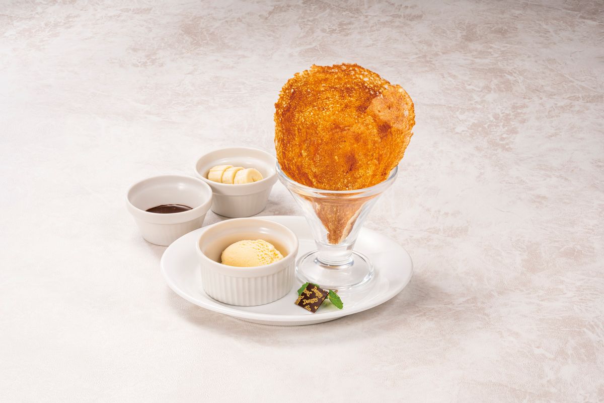 ミニクリスピークレープ&バニラアイス 選べるトッピング 2 種つき+ドリンクバー(1 人分) デニーズ学割¥500(通常価格¥880)