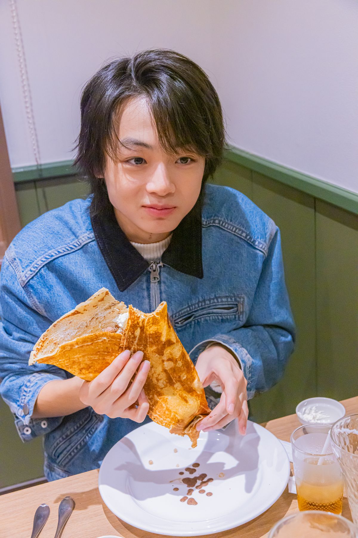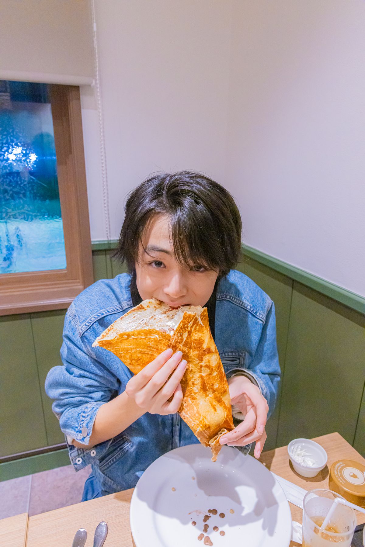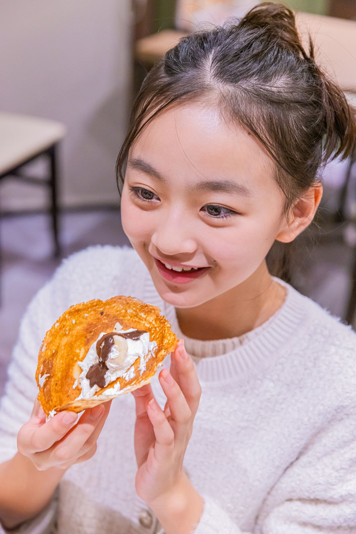 パリパリの生地だけを食べるアコを発見! トッピングすると2倍楽しめるから、カスタマイズって最高だよね♪