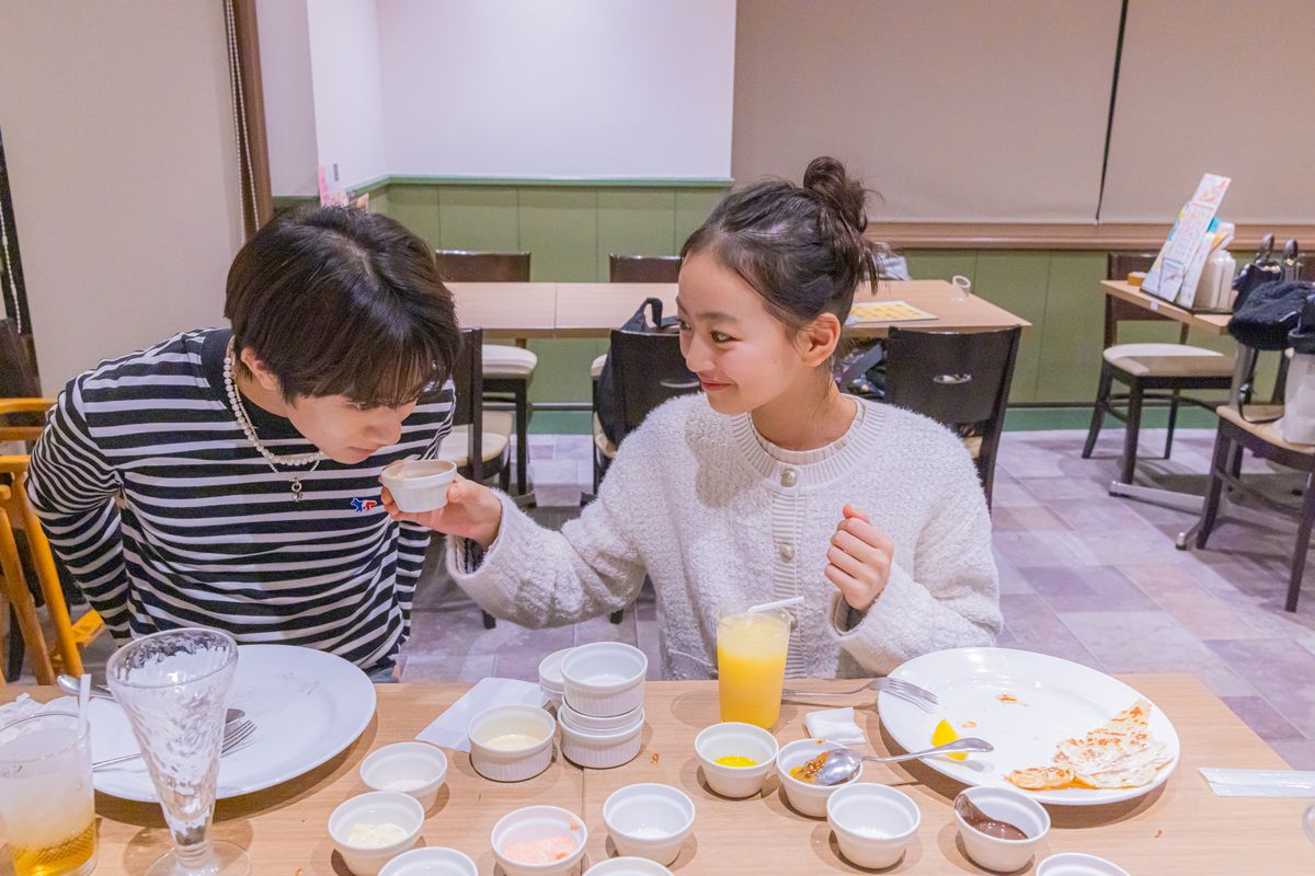 特別に25種類のトッピングを全部用意してもらった♡ どれも生地に合いそうで、さっき決めたはずなのにまた悩む2人(笑)!