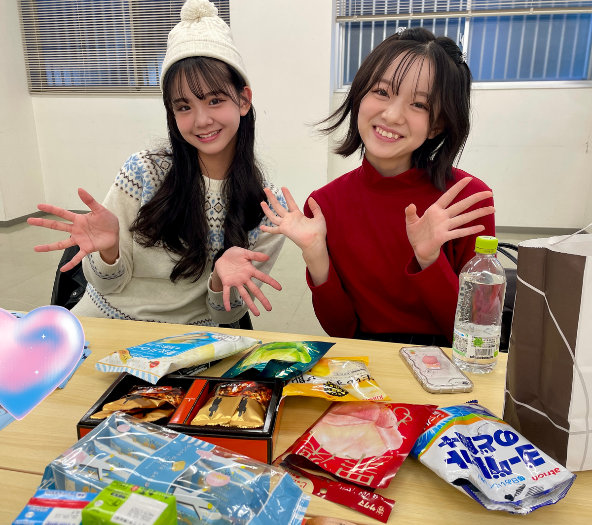 お菓子を大量に持ってきた2人(笑)! 差し入れもたくさんくれて、ありがとう♡ アメ率高めでした(笑)。