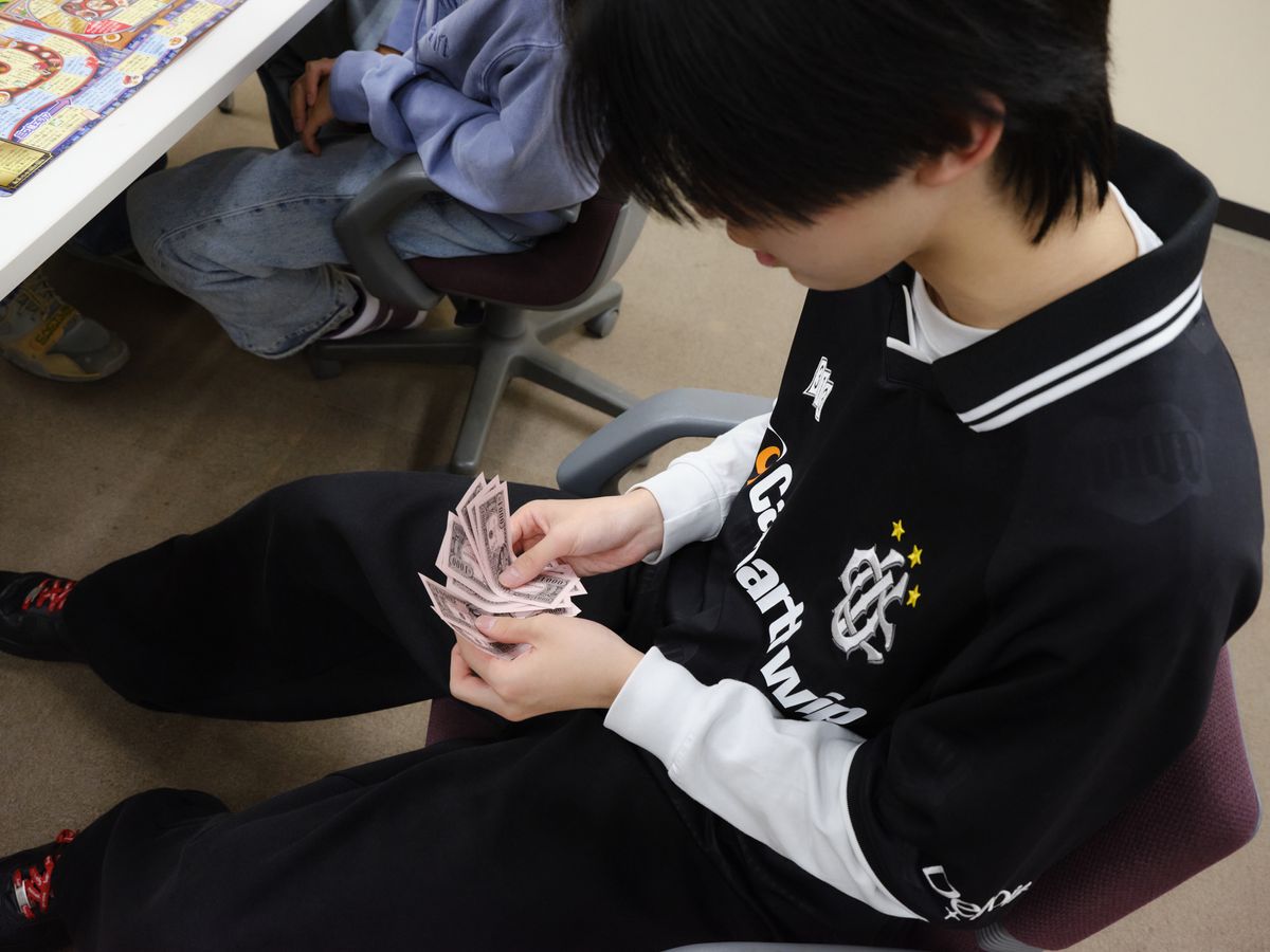 逆にどんどんお金が増えるアサハル。机の上はキレイに整頓させたいようで、何度も銀行で両替していました(笑)。前半は調子がいいけど、後半どうなる!?