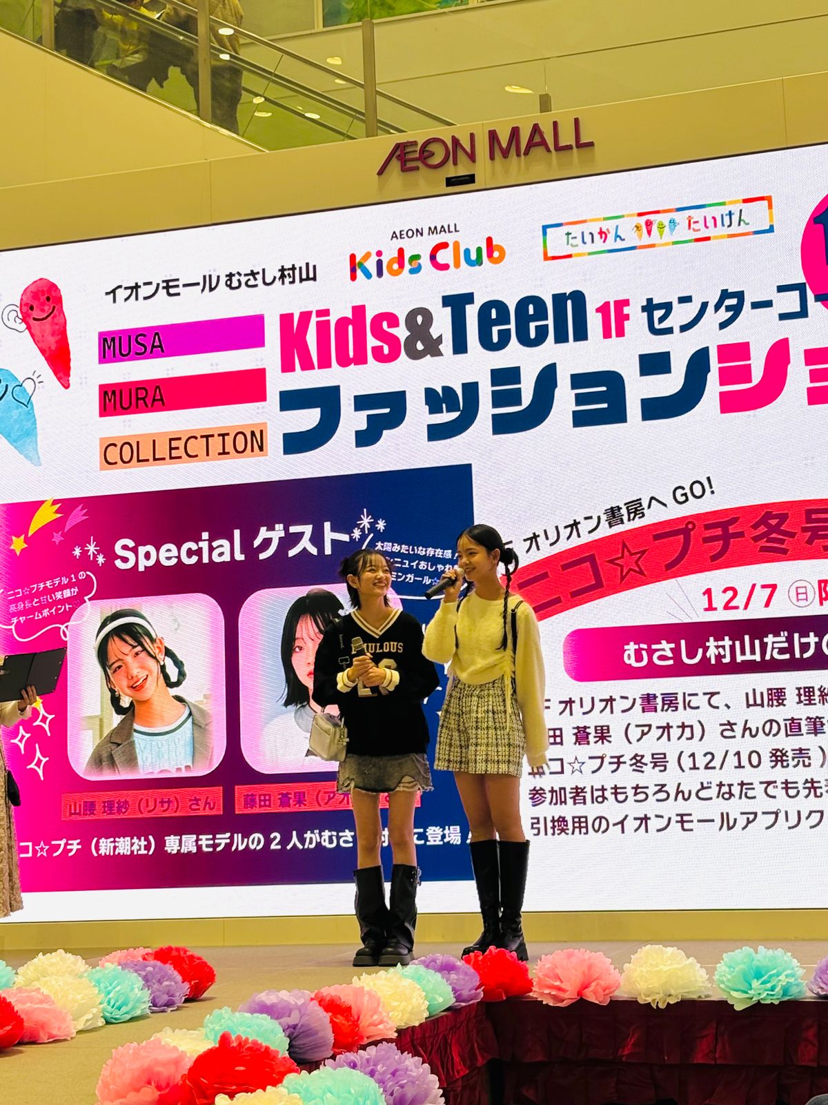 12/7(日)イオンモールむさし村山で開催されたファッションショーに、リサちゃんと2人でゲストモデルとして参加したよ❣️