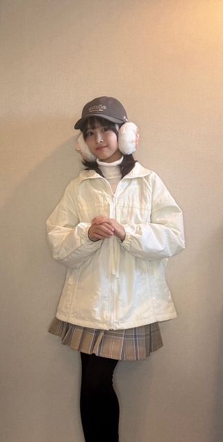 白のアウターをメインにして、イヤマフのピンクのリボンがアクセントになるようにコーデを組んだよ! お友だちとショッピングに行ったり図書館に行くのをイメージしてみた☆