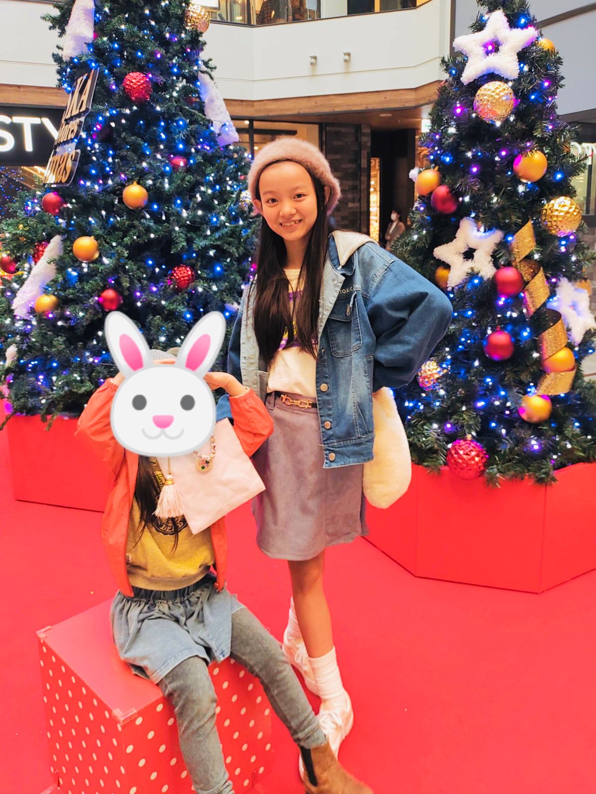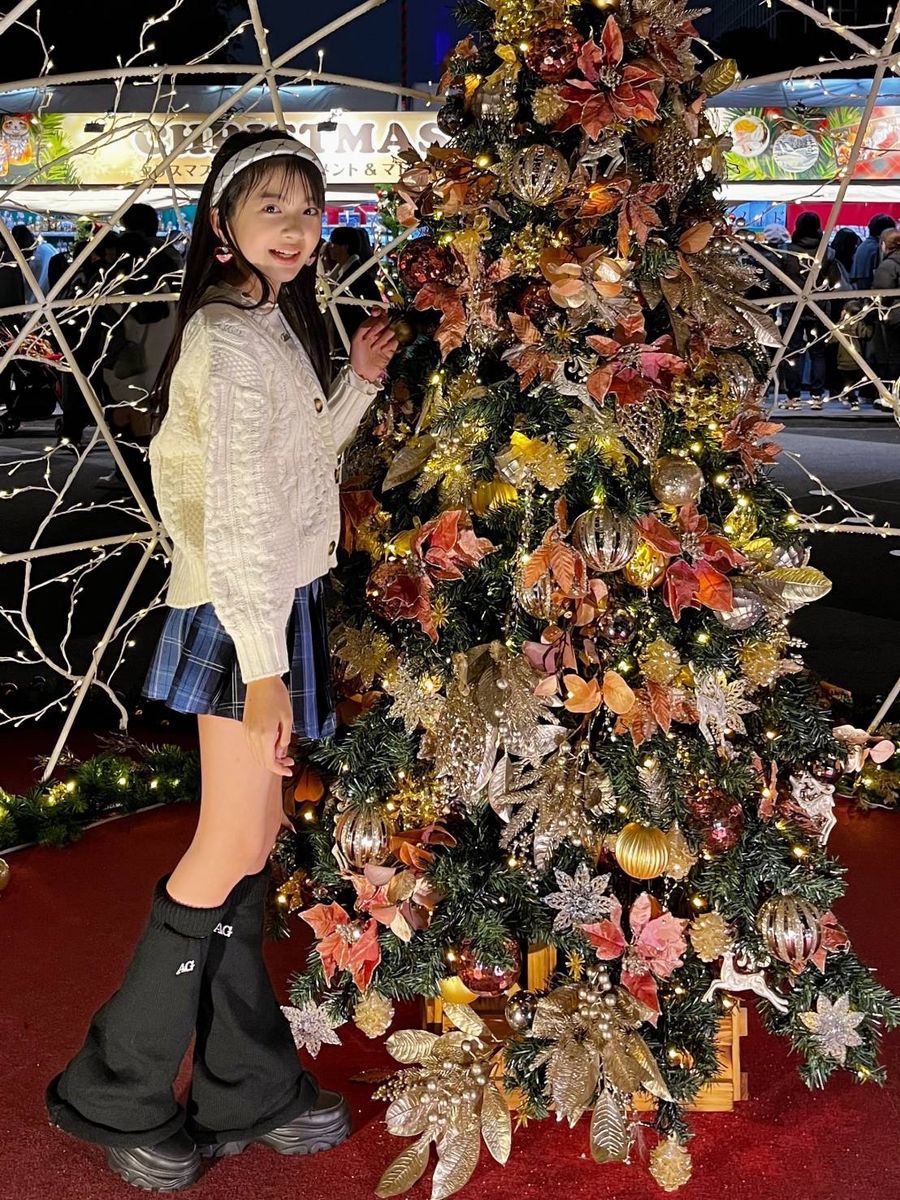キラチャレ2023で『ニコ☆プチ賞』をいただいて、プチ㋲になって最初のクリスマス! プチ㋲になれたお祝いに、イオンモールでお洋服を買ってもらったよ! これは妹とツリーの前で撮った写真。まだ表情もポーズもぎこちなくて、久しぶりに見て笑っちゃったけど、とても印象に残るクリスマスだったよ☆