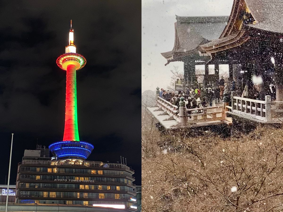 ⼩学3年⽣の頃、クリスマスの⽇に京都へ⾏ったとき、途中から⼤雪が降ってきて、⼀気にホワイトクリスマスになったことがありました! ⼭を登ったり、クリスマスカラの京都タワーを見たり。特に⼤吹雪の清⽔寺でみんなで⼤はしゃぎしたのを今でも覚えてる(笑)!