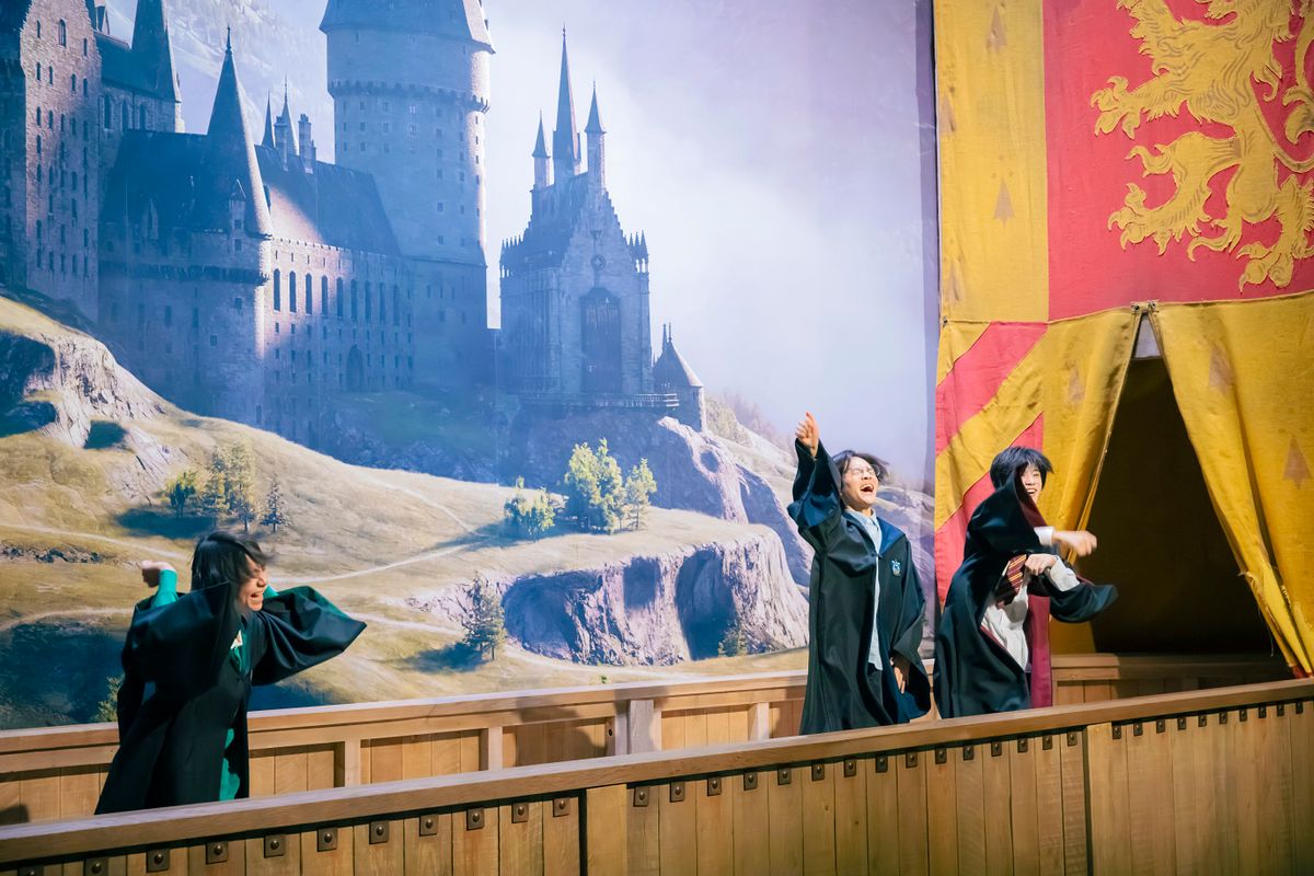 映画『ハリー・ポッター』でおなじみ、魔法界の人気スポーツ・クィディッチ。撮影では、俳優の皆さんはグリーンスクリーンを背景にほうきにまたがって演技、観客席の映像は後から合成で加えられたんだって!