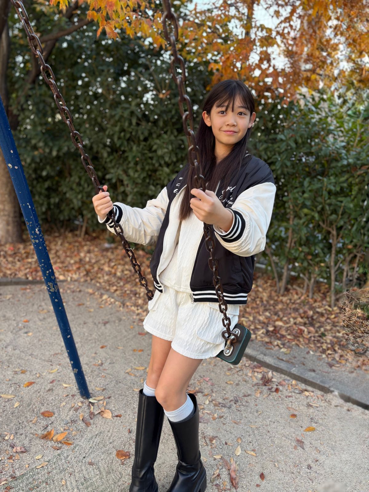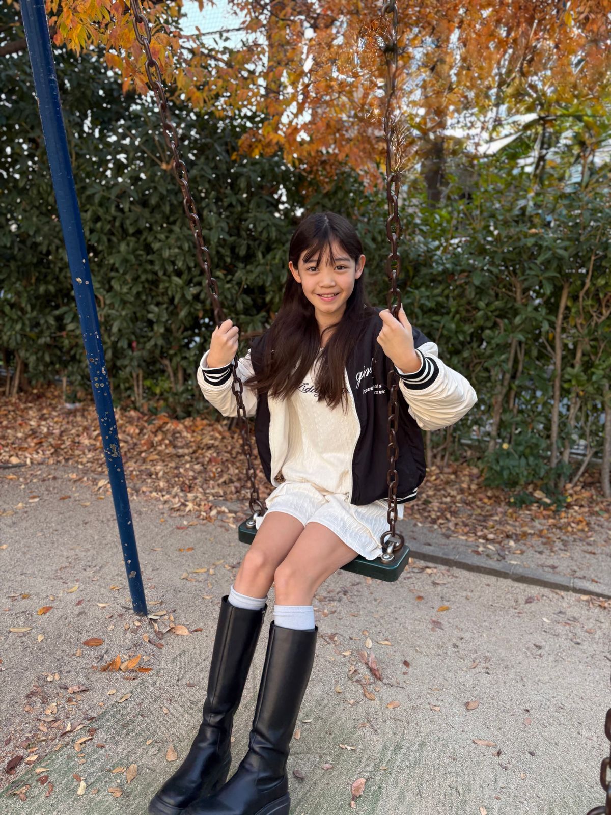 お日様にも当たらないといけないから、公園へ! 特にブランコが好きだよー♡