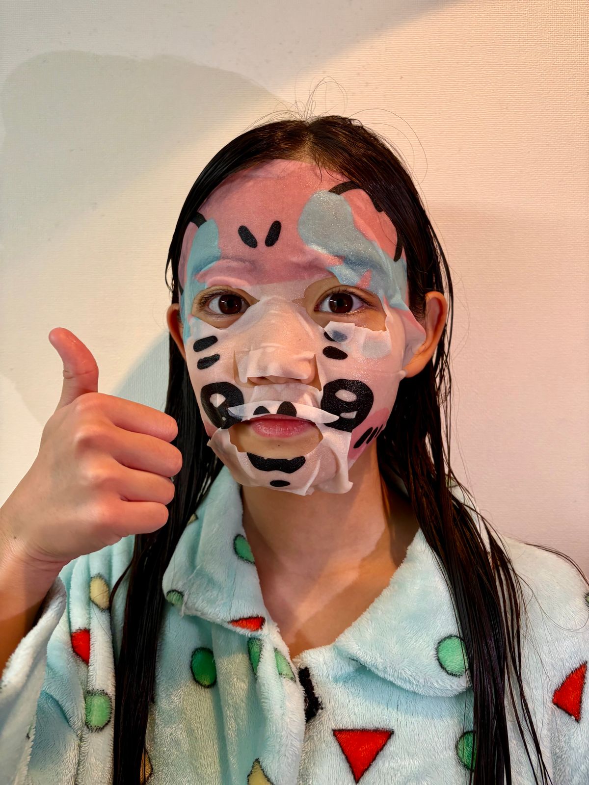 撮影があった日はしっかりメイク落とししてしっかりパックして保湿! パジャマはクレヨンしんちゃん♡笑