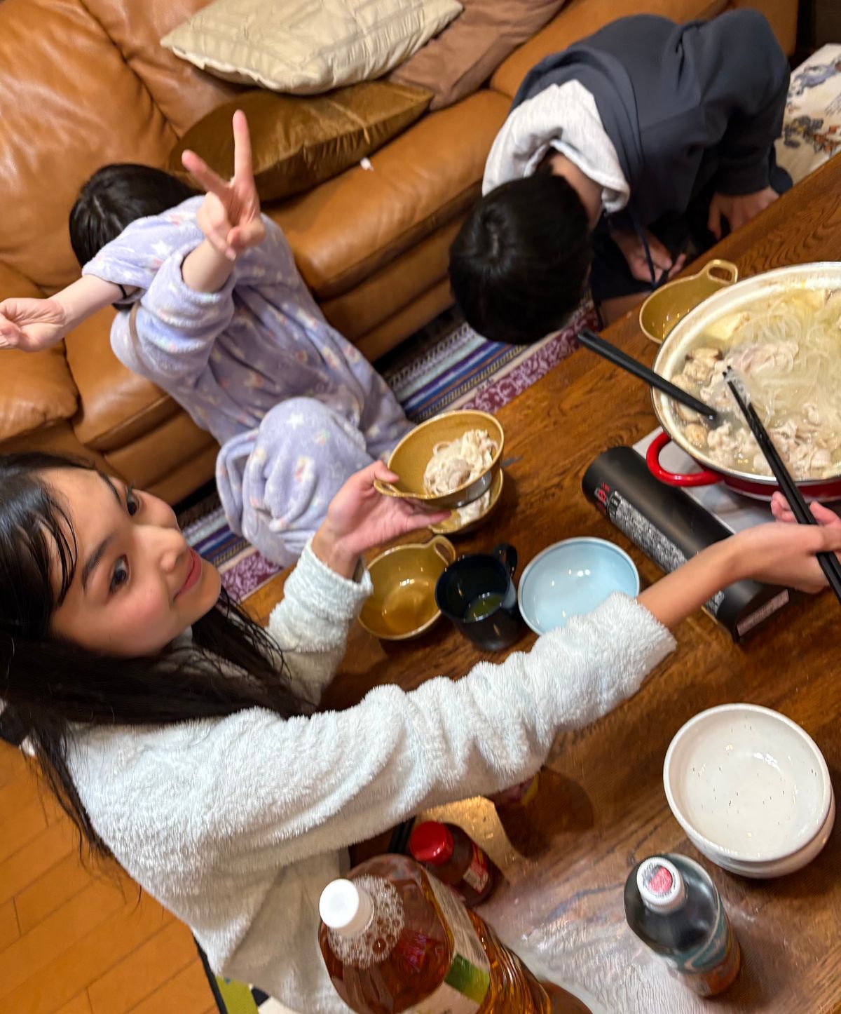 おばあちゃんの家に行って従姉妹たちと鍋を食べたよ! しめのラーメンまでお腹いっぱい食べた!