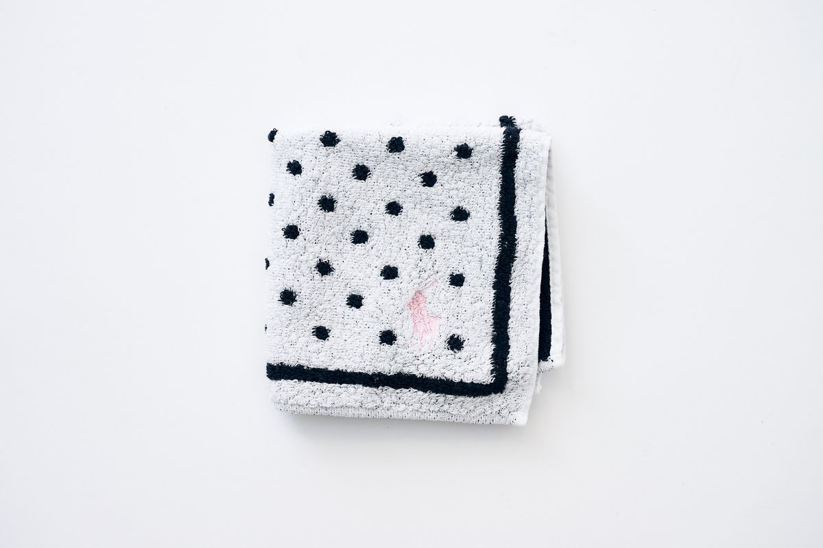 ドットでピンクのロゴマークがお気に入りです! ハンカチが大好きで雑貨屋さんなどにいくと必ずハンカチはチェックしてしまいます! ファッションは⿊が多めだけど、ハンカチの⿊は少なめかなっ!