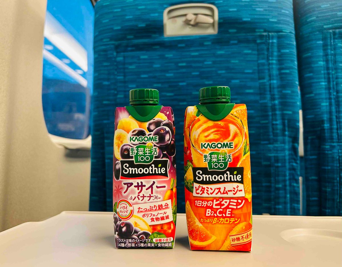 きあらは朝新幹線に乗るとき、フルーツや野菜の飲み物を飲むよ✨