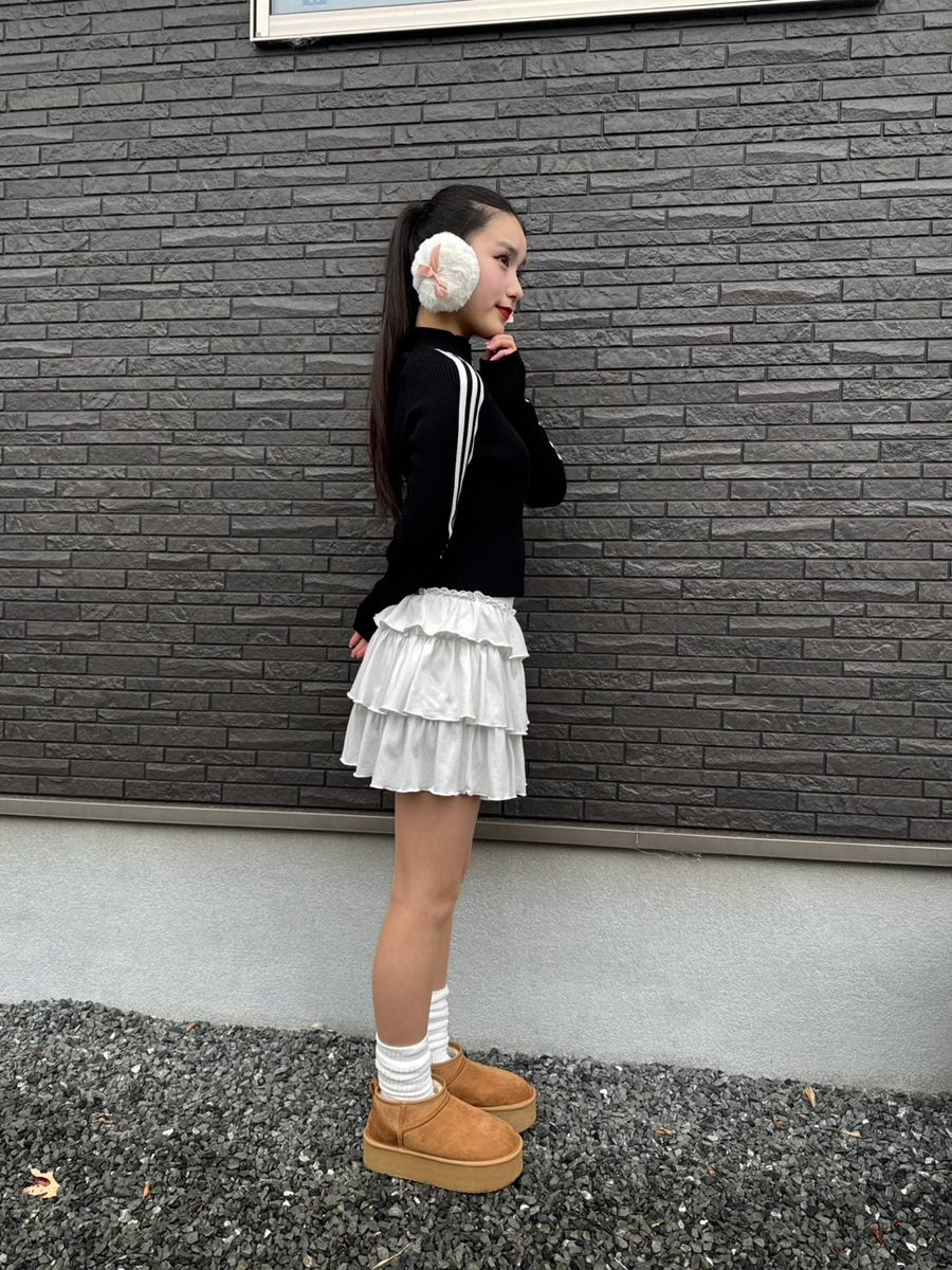 ムートンブーツ×ルーズソックスの組み合わせがお気に入り♡冬にスカートを履くのは寒いけど、ムートンブーツとソックスがあると足元あったか♡