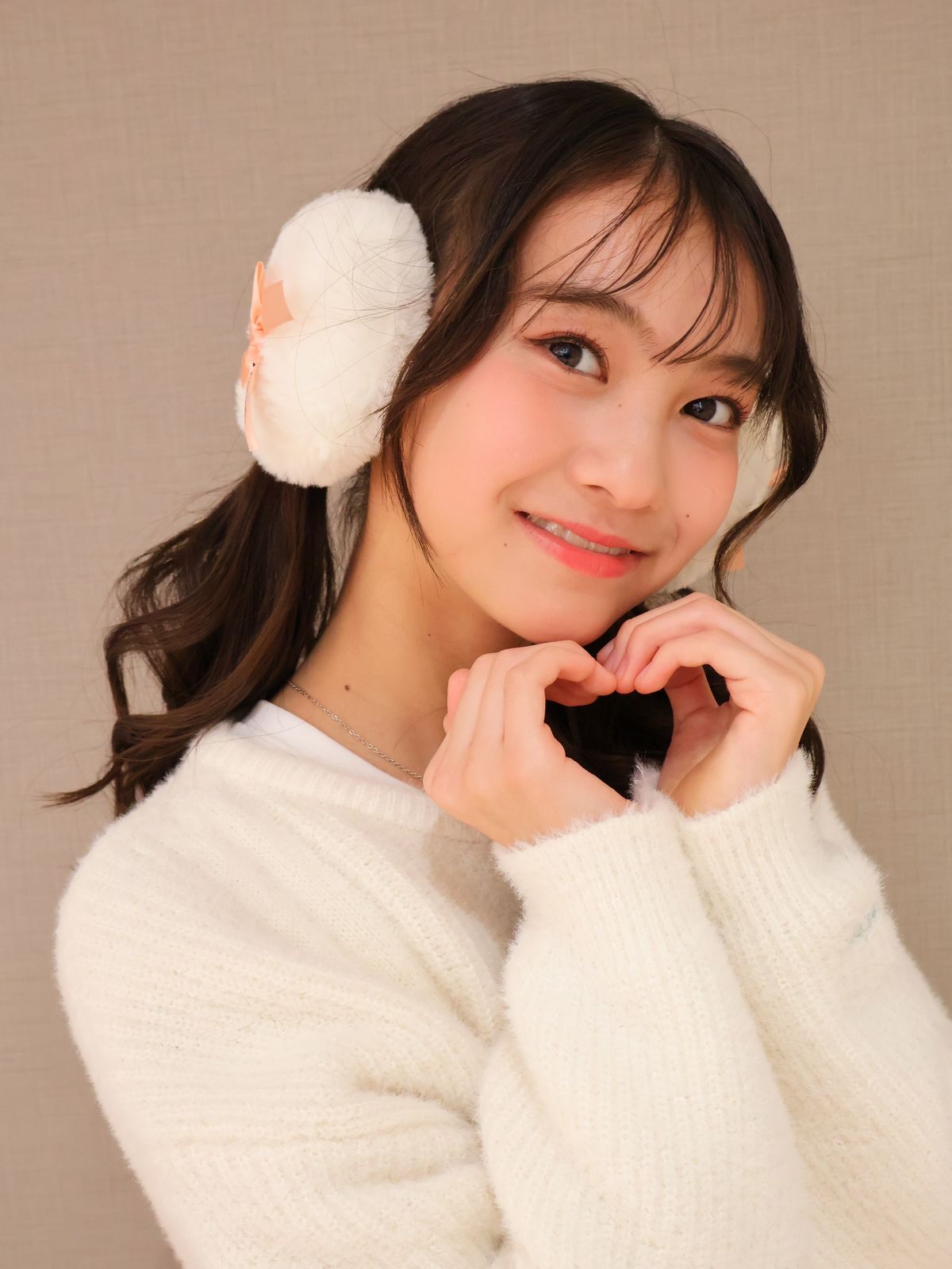 シンプルな白のイヤマフだからこそ、楽しみ方は無限大! みんなも自分なりのヘアメイクを楽しんでね。