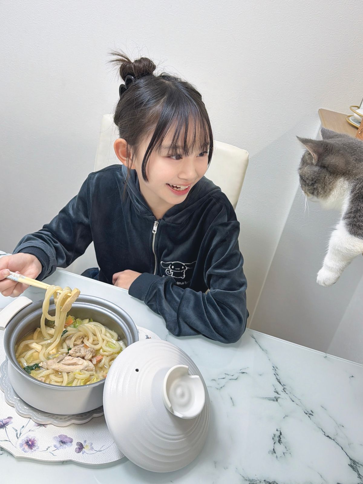 帰宅後は晩ごはんのお鍋。お腹ぺこぺこ! ダンスの日は時間がないからすぐに食べれるメニューにしてもらってるよ。マロくんがいつもよってくるから食べるのが大変!