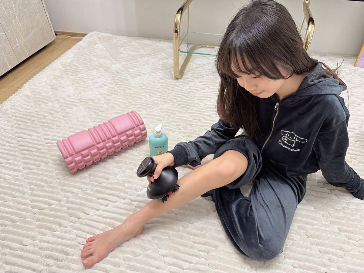 21時には寝たいから早めにあがるよ♡ 美容タイムは、たくさん歩いて足が疲れたからしっかりマッサージ&ストレッチ!