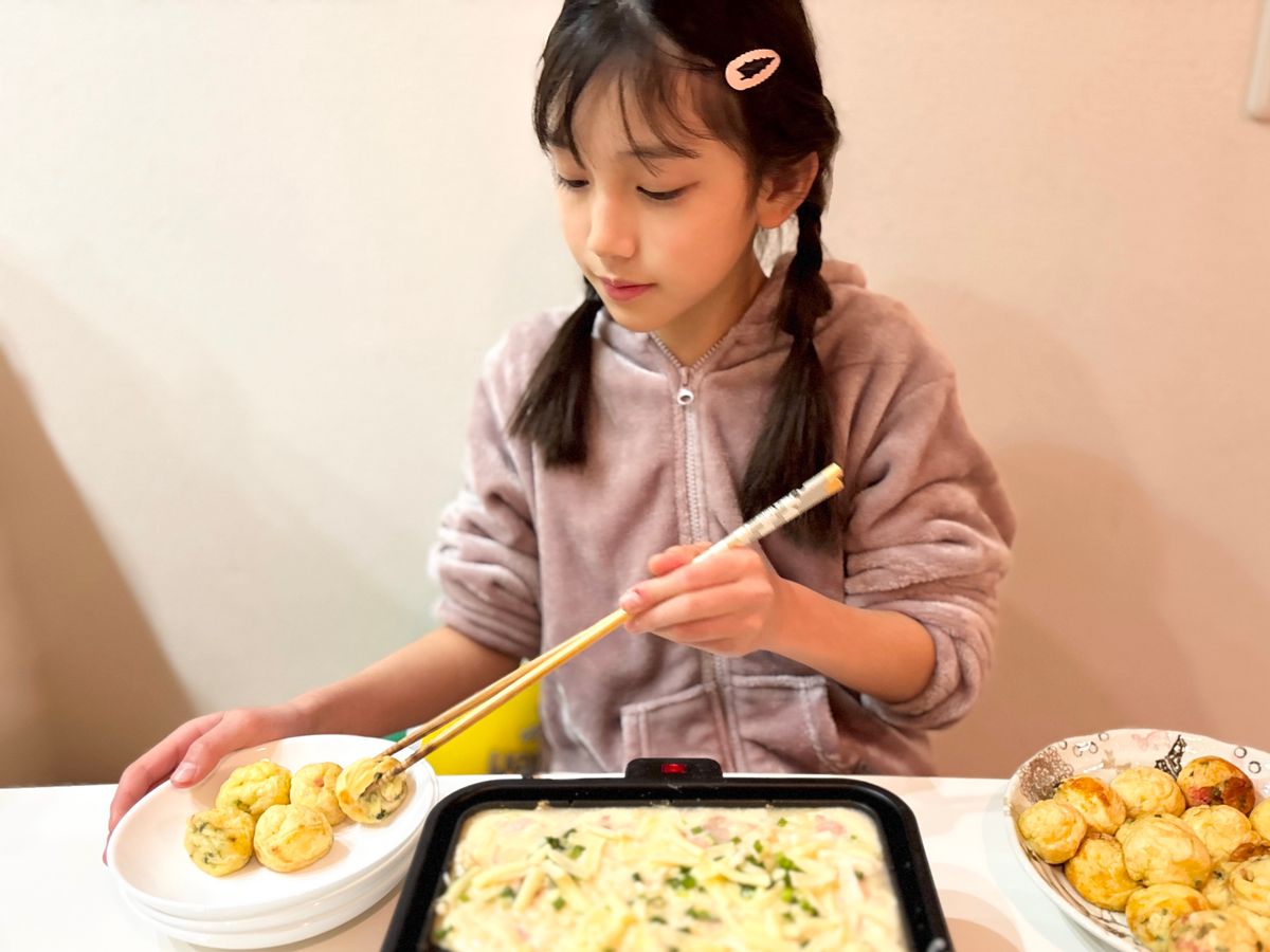 夕飯はお家でたこ焼きを作ったよ。楽しくてたくさん作るから、おなかいっぱいになるまで食べちゃう♡