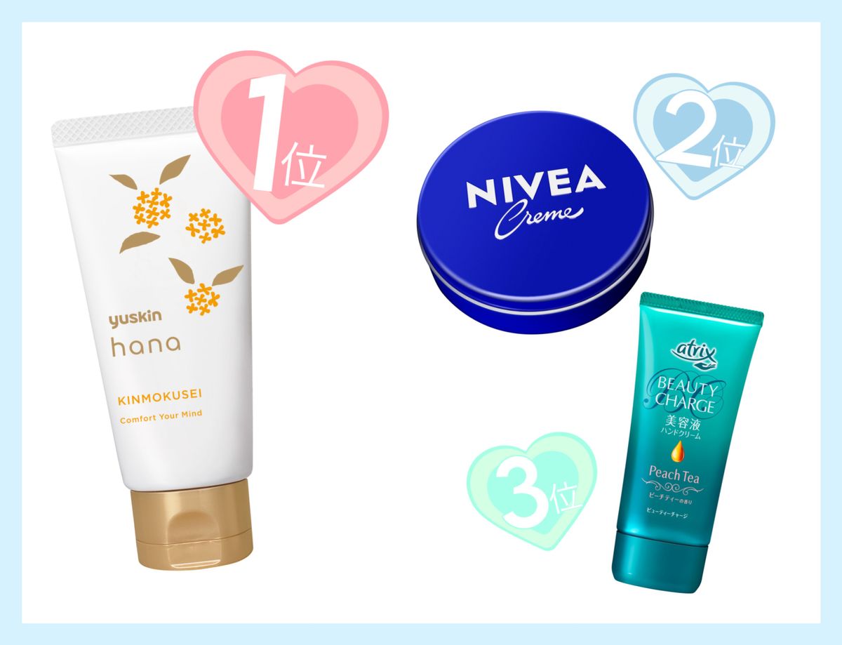 1位 ユースキンhana ハンドクリーム日中にも使いやすくて、コクのある濃厚クリームが手荒れを防ぐ! ほのかに花の香りも。キンモクセイ¥770/ユースキン製薬