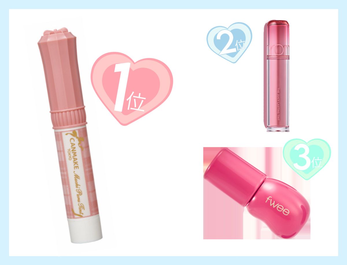 1位 キャンメイク むちぷるティント発色のよさにくわえて、プランプ効果でむっちりと魅惑のくちびるを演出してくれる!
