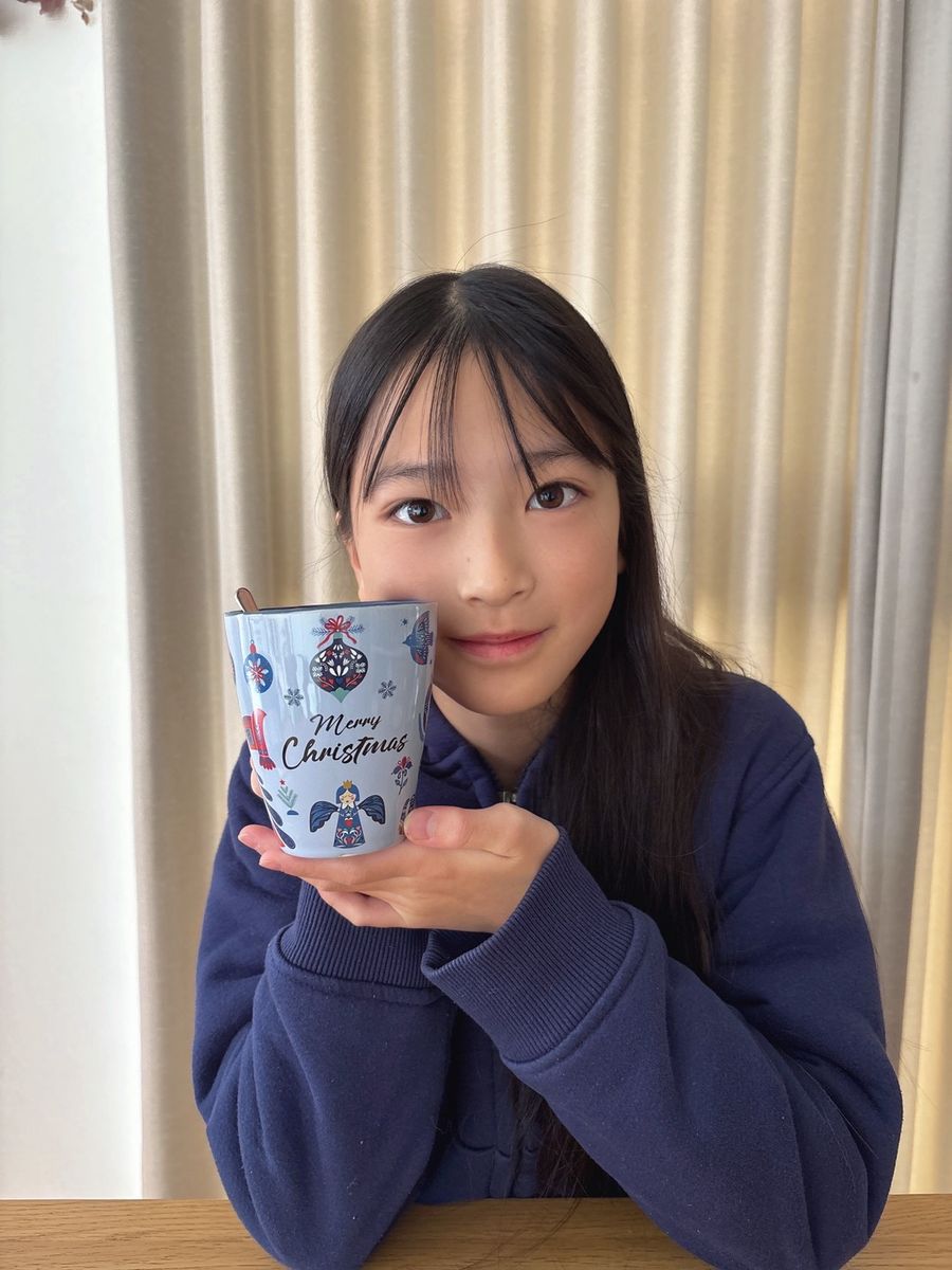 毎朝カルシウムたっぷりの温かいココアを飲んでいるよー!