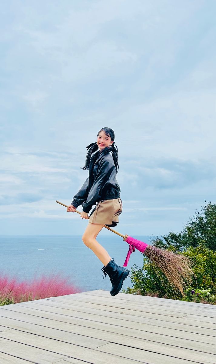 ママと熱海におでかしたときに撮った写真です♡ 『魔女の宅急便』のキキになりきって、ホウキにのってとりました。飛んでるように見えるかな? 「いつも笑顔を忘れずに、色んな事に挑戦して、羽ばたけますように♡」の気持ちを込めた写真でお気に入りです☆年末のごあいさつ