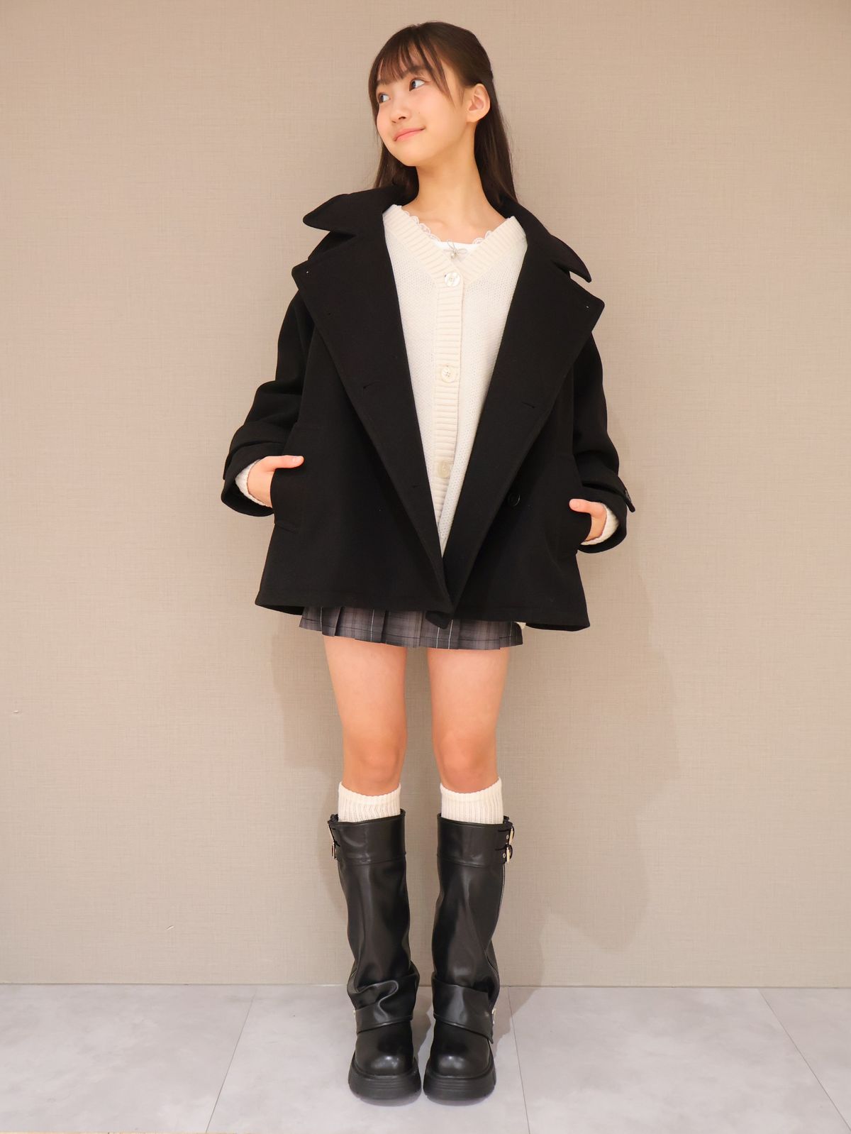 もうひとつは、冬といったらコートにロングブーツだよね!モノトーンコーデでちょっと大人っぽく見えるかな?140cmでニコ☆プチのオーデに応募してから、気づいたらもう少しで160cmに届きそうなところまで成長したよ!