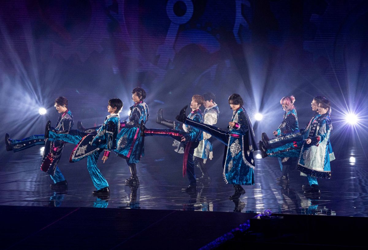 高さ20mのクレーンに乗ってパフォーマンスをしたのは『Ready Go Round』。そうかい感のあるサウンドが特徴のこの曲では、スタンドのファンに手をふるメンバーの姿が印象的。そして、SNS総再生回数10憶超えを記録した『カリスマックス』では、9人全員サングラスをしてパフォーマンス。キレのあるダンスと歌で、カリスマックス100点満点のかがやき♪ ちなみにこの曲の前には宮舘くんによる“舘タイム”も!