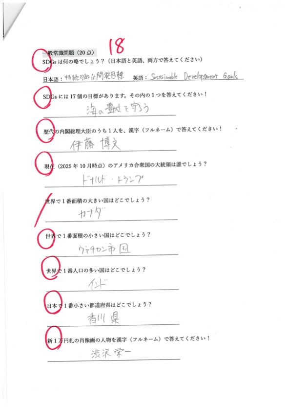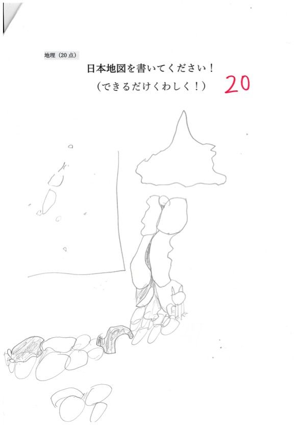日本地図は県名を書いてがんばっていたのでおまけの20点! ”き”は近畿地方かな? だとしたら”中国地方”と逆だよ〜!