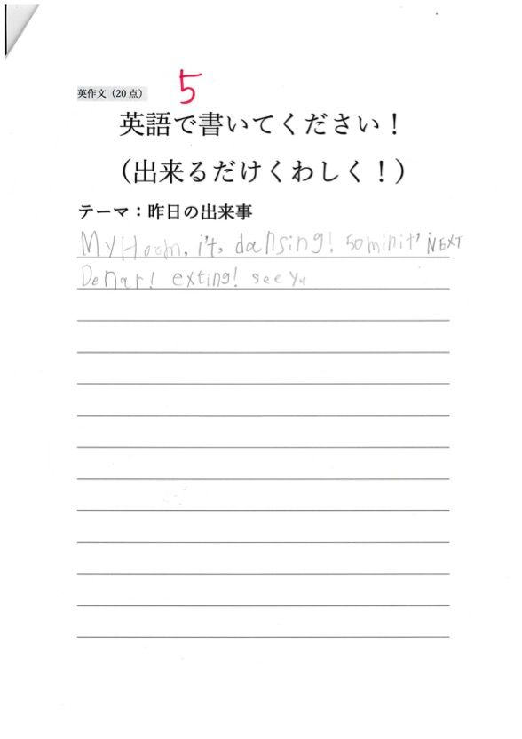 伝えたい気持ちは伝わる英作文! 白紙で出さないところがエンターテイナーです!