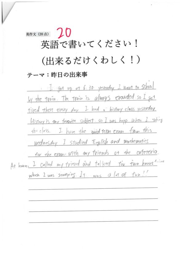 中2とは思えないパーフェクトな英作文! 素晴らしい☆