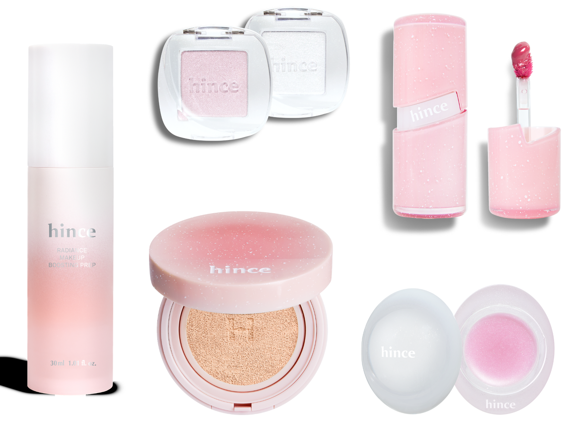 雪をイメージしたカラーとパケがしんせんなホリデーコレクションで、透明感アップを目指そう☆ [左から時計回りに] ラディアンスメイクアップブースティングプレップ¥2640、シングルアイシャドウ 各色¥1210、ロウグロウジェルティント R016ロウ・ベリー¥1760、水光プランパーライラックデユー¥1815、カバーマスターピンククッション¥2970/すべてヒンス