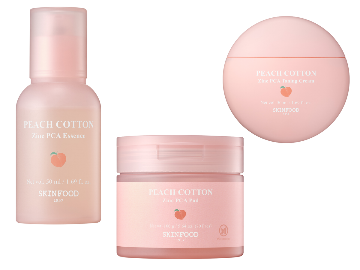 ころんとしたピンクのパケがキュート。セットで使えばしっとり&さらさらなお肌に♪ ピーチコットン ジンクPCAトーニングクリーム&パッド&エッセンスセット¥7920/フードコスメ hince ヒンス
