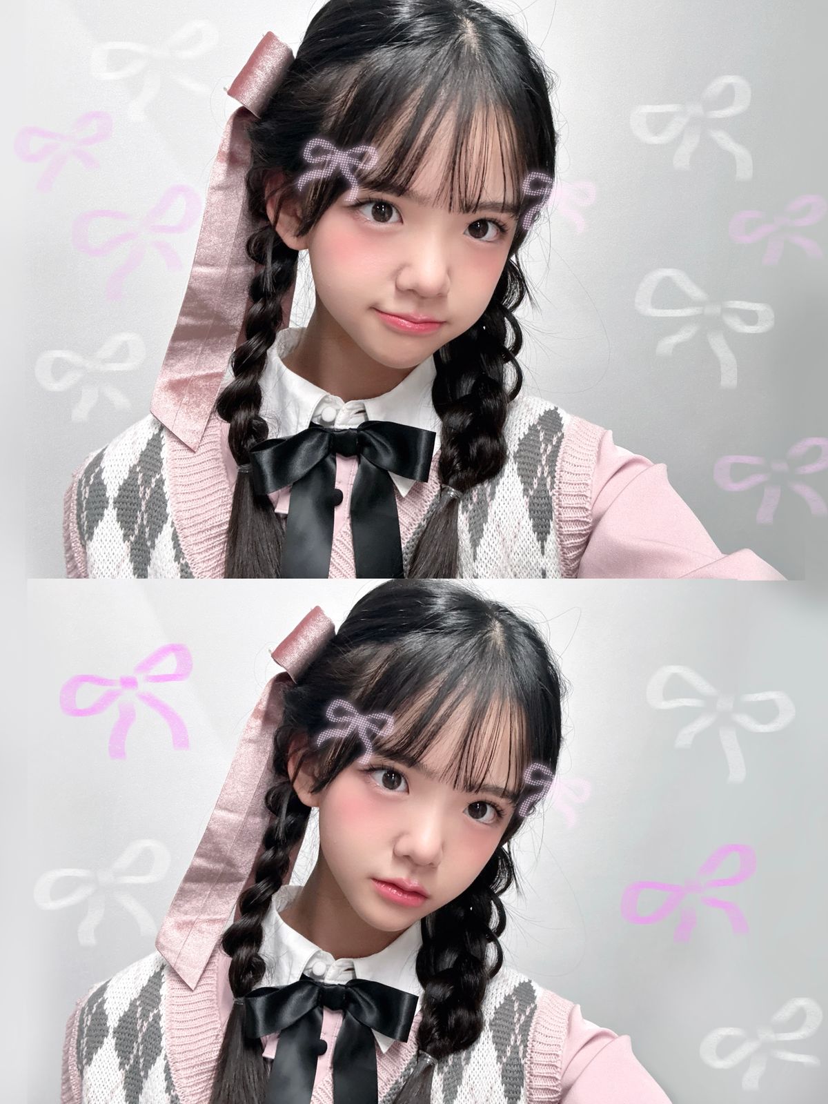 地雷メイクをしてもらったよ💕りさはピンクメイクが好きだから嬉しかった〜!服もヘアアレもガーリーでリボンいっぱいで可愛い!🎀