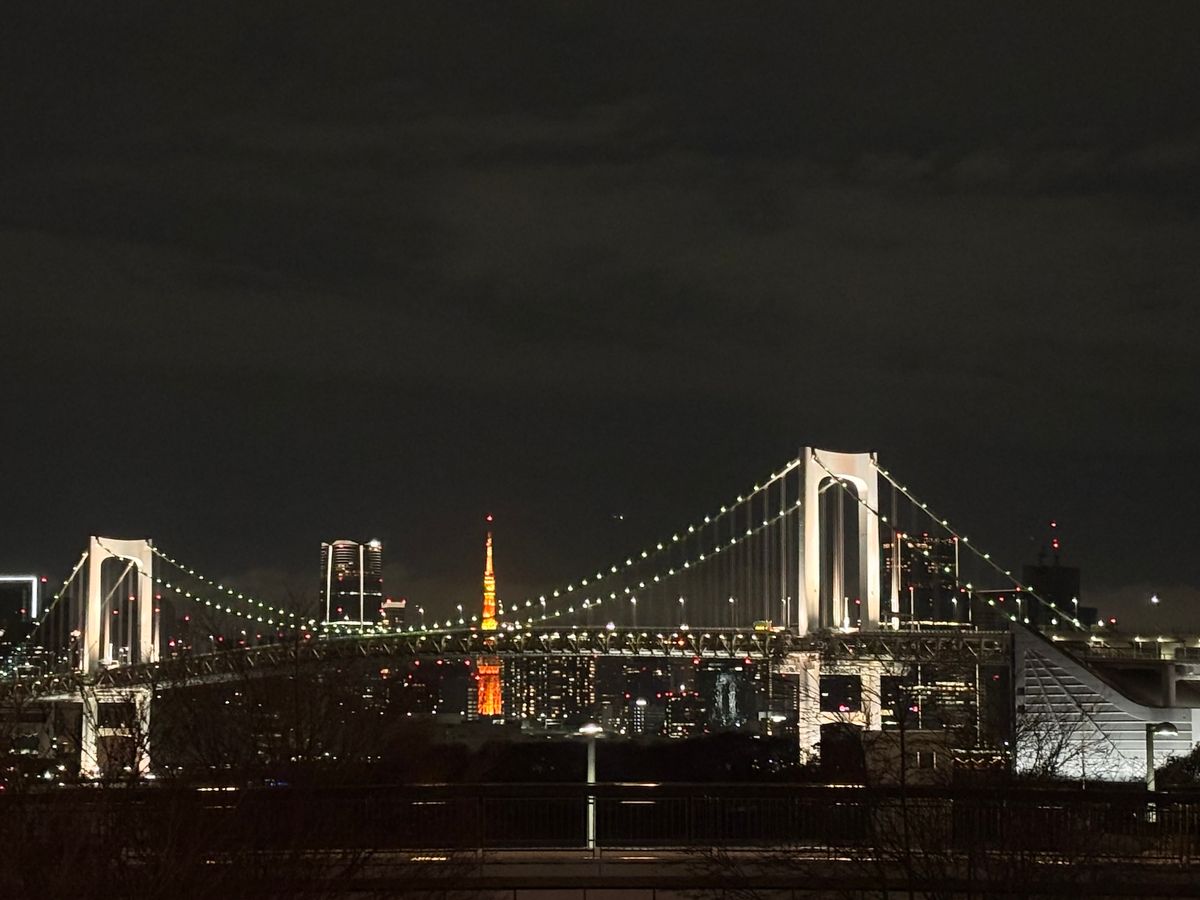 イベントの帰り道、お台場からみた景色がすごく綺麗だったよ✨レインボーブリッジの真ん中に東京タワーも見えて、キラキラしていて最高でした🗼✨