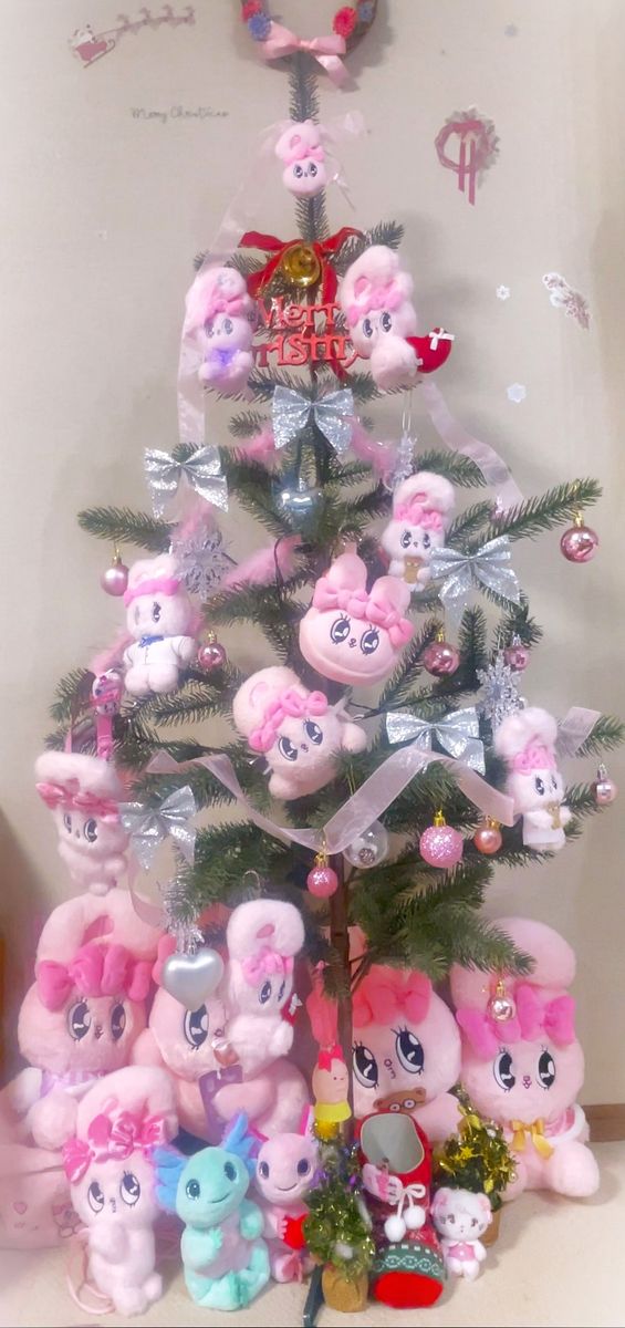 冬休みのゆいぴの推し活は・・・大好きなエスターバニーでツリーの飾りつけをしたよ! 推しのエスターバニーのぬいぐるみと、100円ショップのオーナメントやリボンを使って、 ゆいぴが飾りつけをしたんだξ´๑•ω•๑`Ҙ🎄最大級にかわいい推しツリーをつくったよ🎅