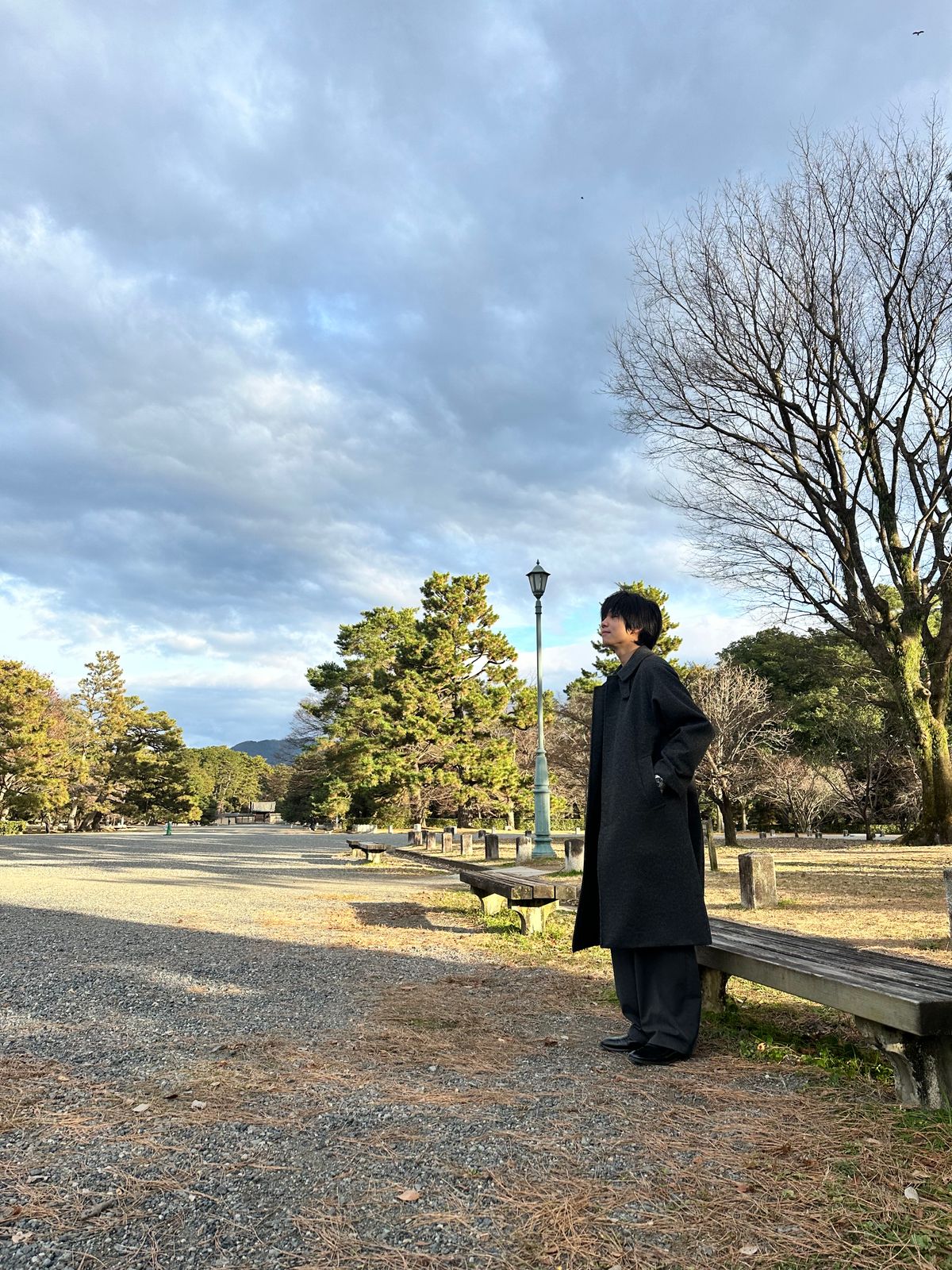 それはズバリ上着です。京都は氷点下に達することもあるので、暖かくするものは必須です! 僕が今年よく来ているのはこのグレーのコートです!