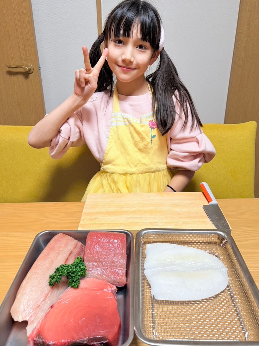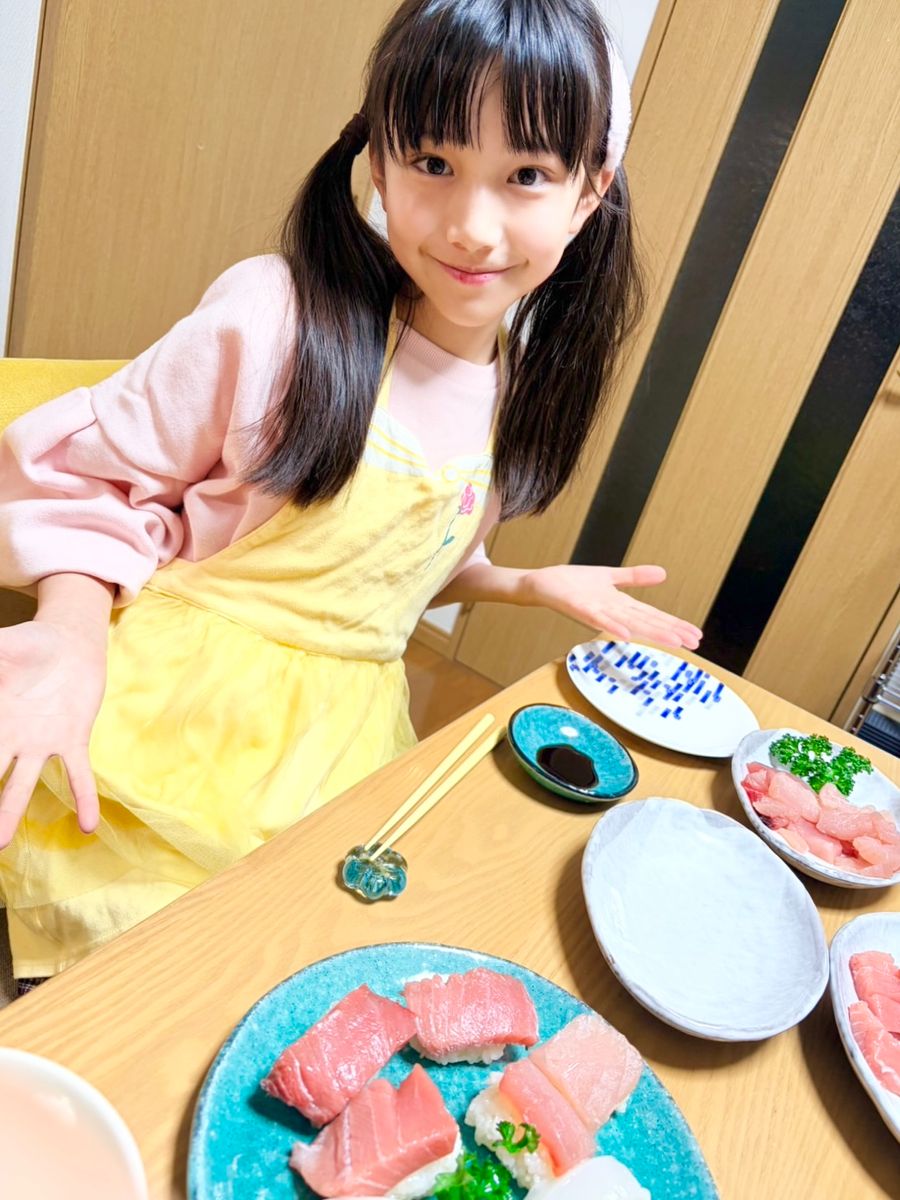 おさしみを切って自分でお寿司を作ったよ🍣ちょっとむずかしかったけどおいしかった😋