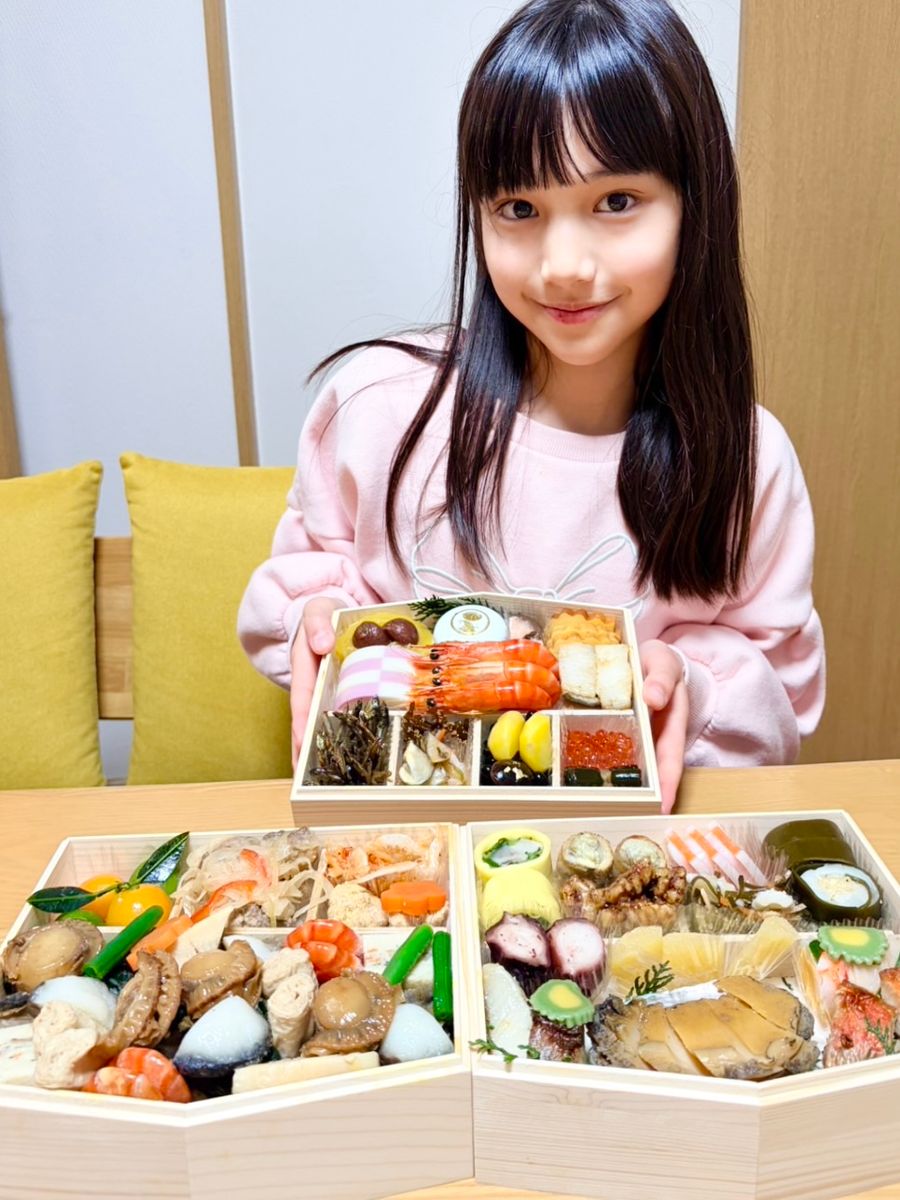 冬休みはおばあちゃんのお家でおいしい物をたくさん食べたり、伊勢神宮(いせじんぐう)へはつもうでへ行ったりしたよ✨おせちとおさしみといせえび。
