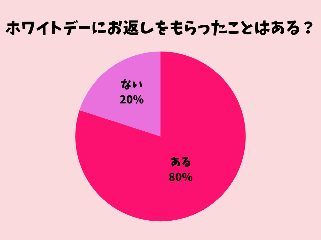 8割が「ある」と回答。チョコを渡したらきちんとお返しがあるケースが多く、バレンタイン&ホワイトデーがセットのイベントとして、小中学生に定着していることがわかります。