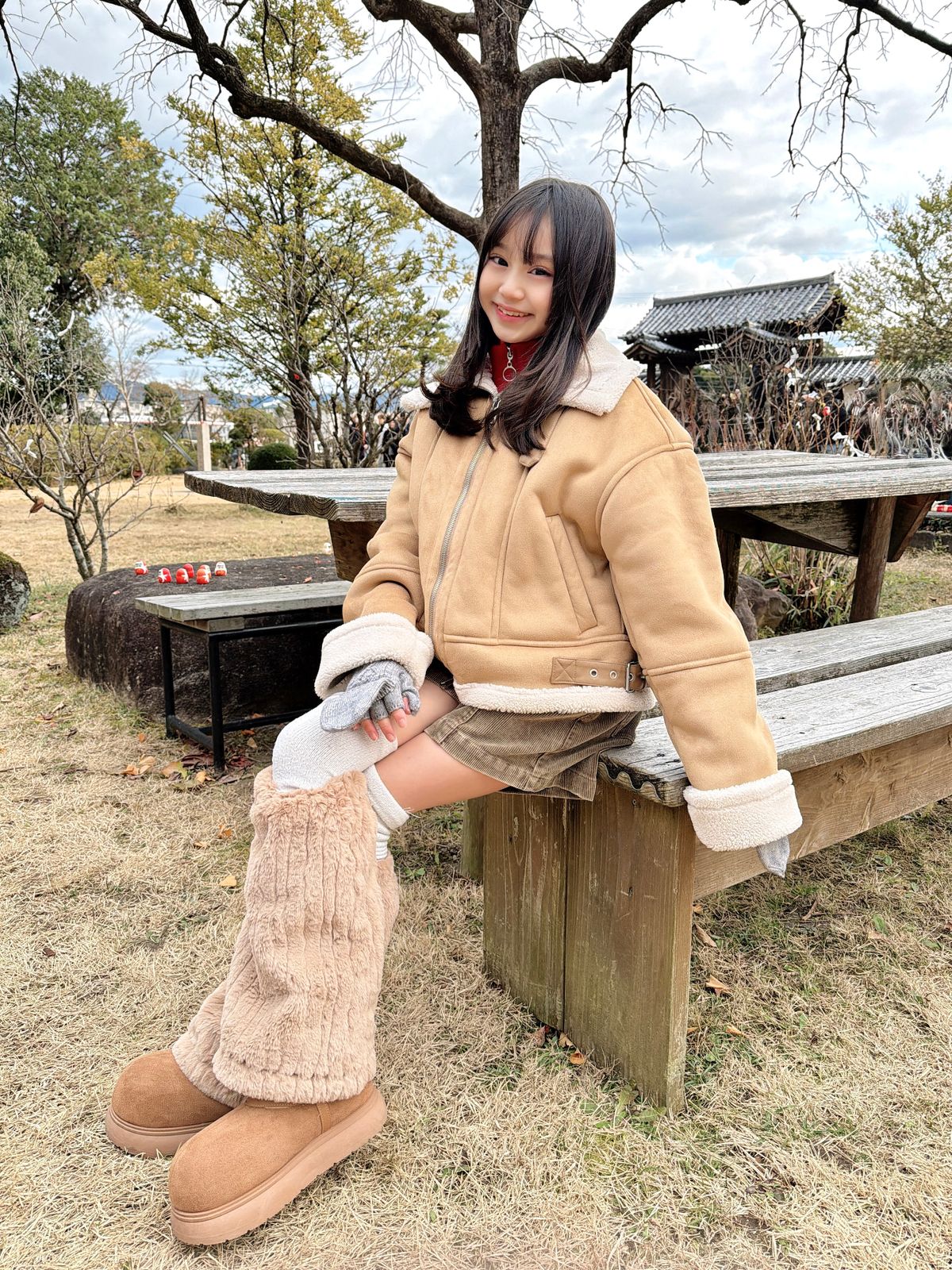 最近のお気に入りコーデはムートンジャケットとムートンブーツの組み合わせ🤎すごくあたたかくてびっくりしちゃった🐏