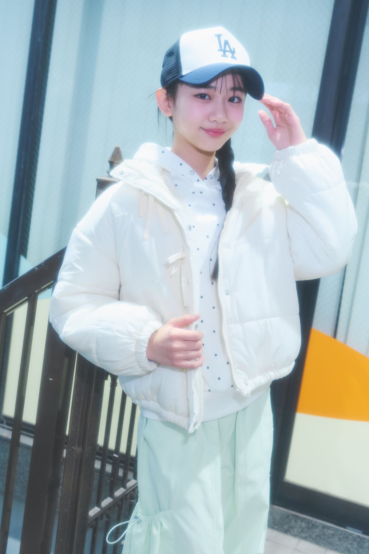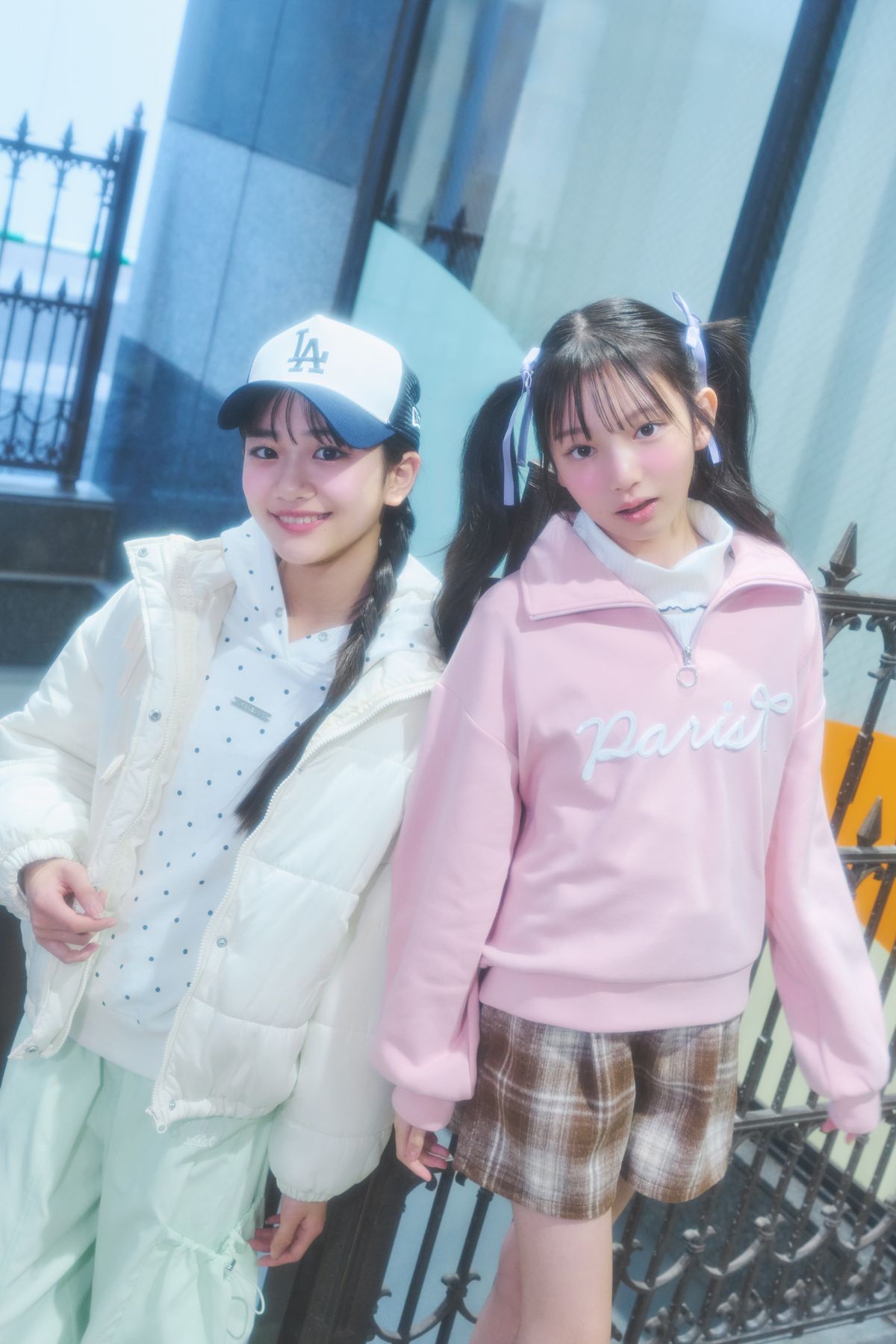 ちひな☆ブルゾン¥4690/アムリールガール(クロスプラス) パーカ¥2790/ビスキー パンツ¥4389/ピンク ラテ キャップ¥4620/ニューエラ
